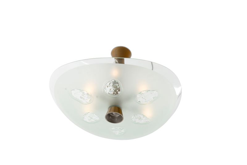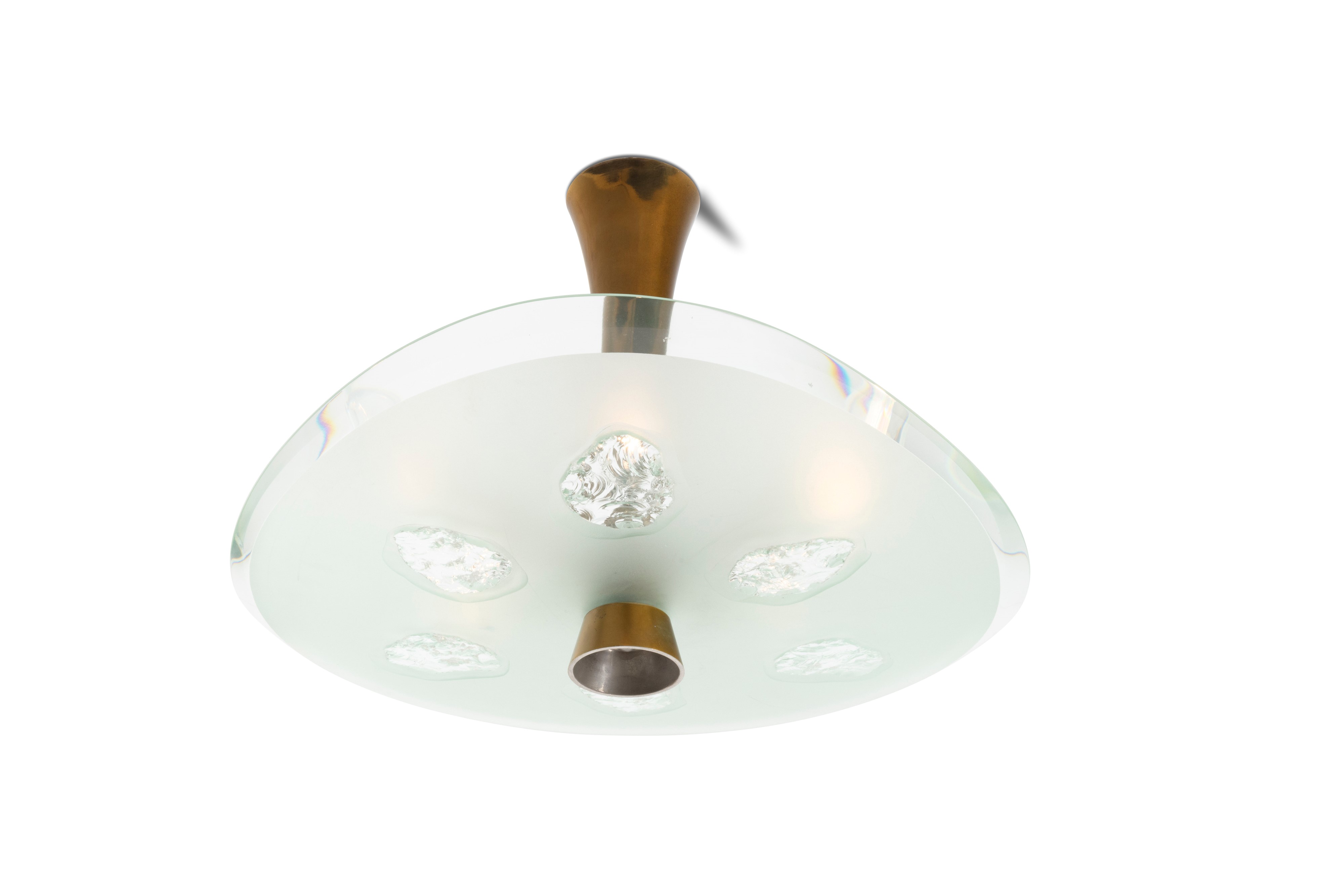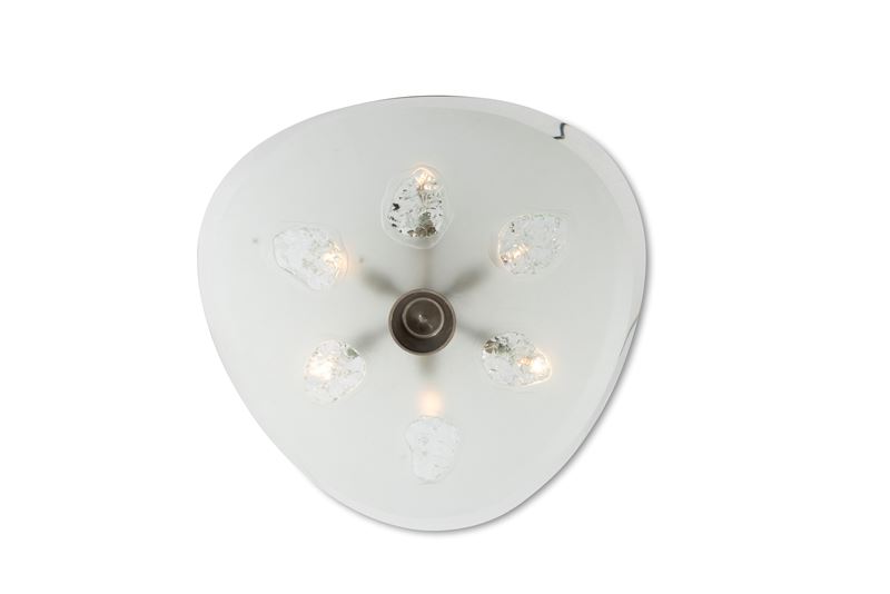 Diffusore in cristallo molato a bisello irregolare trasparente e sabbiato centralmente.