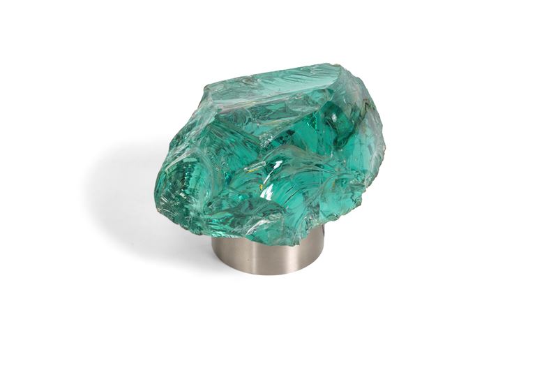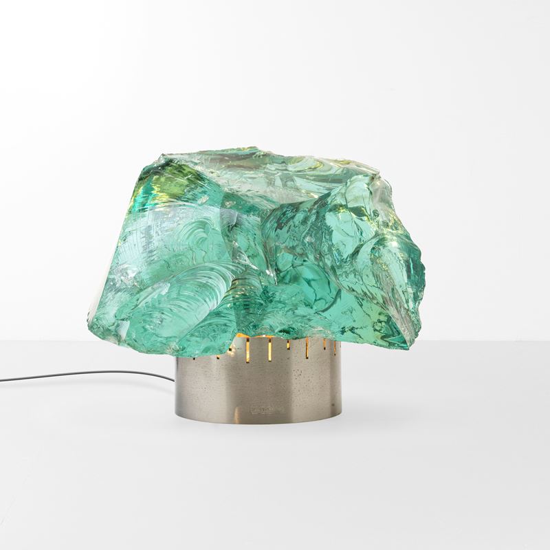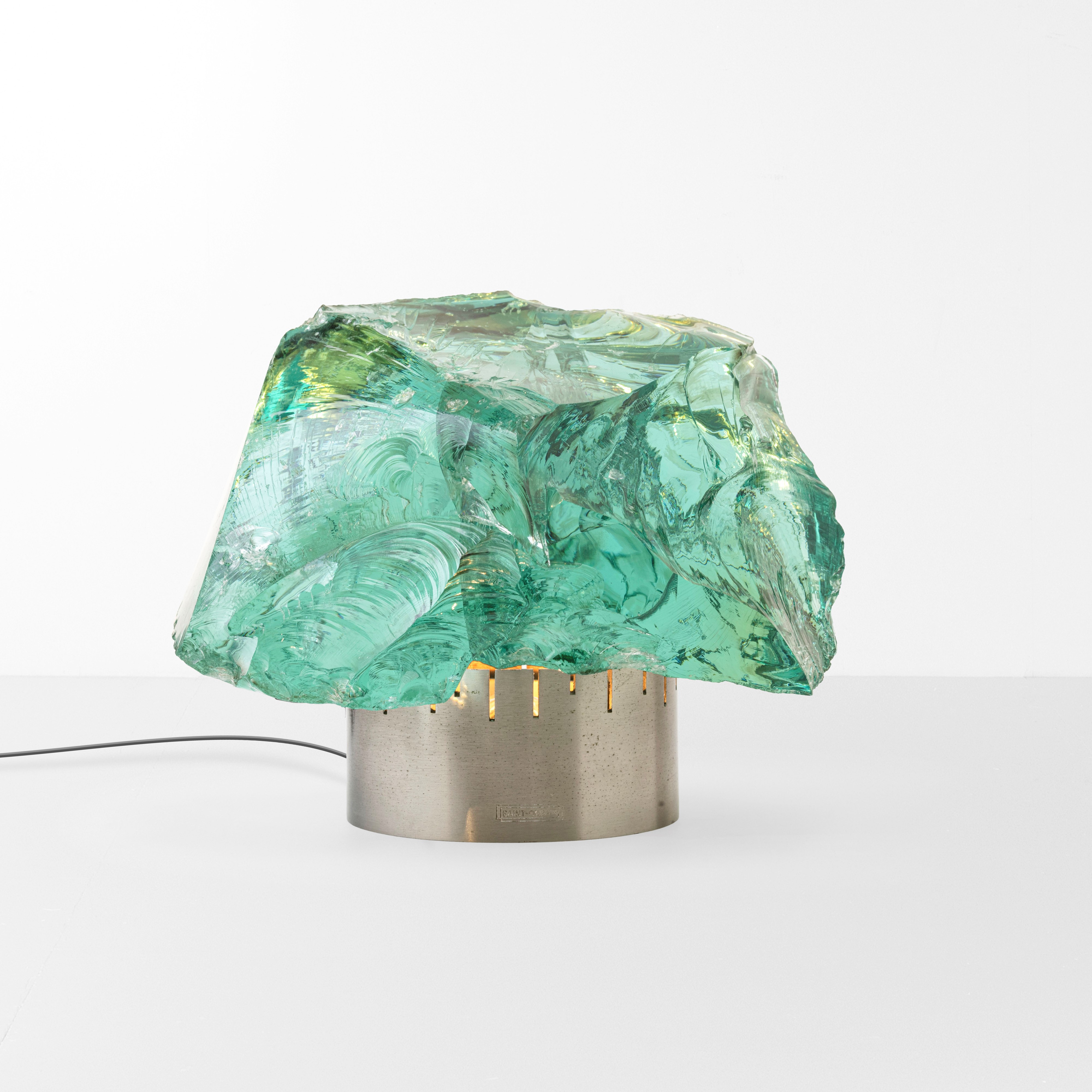 Base in metallo nichelato spazzolato e diffusore in cristallo scalpellato.