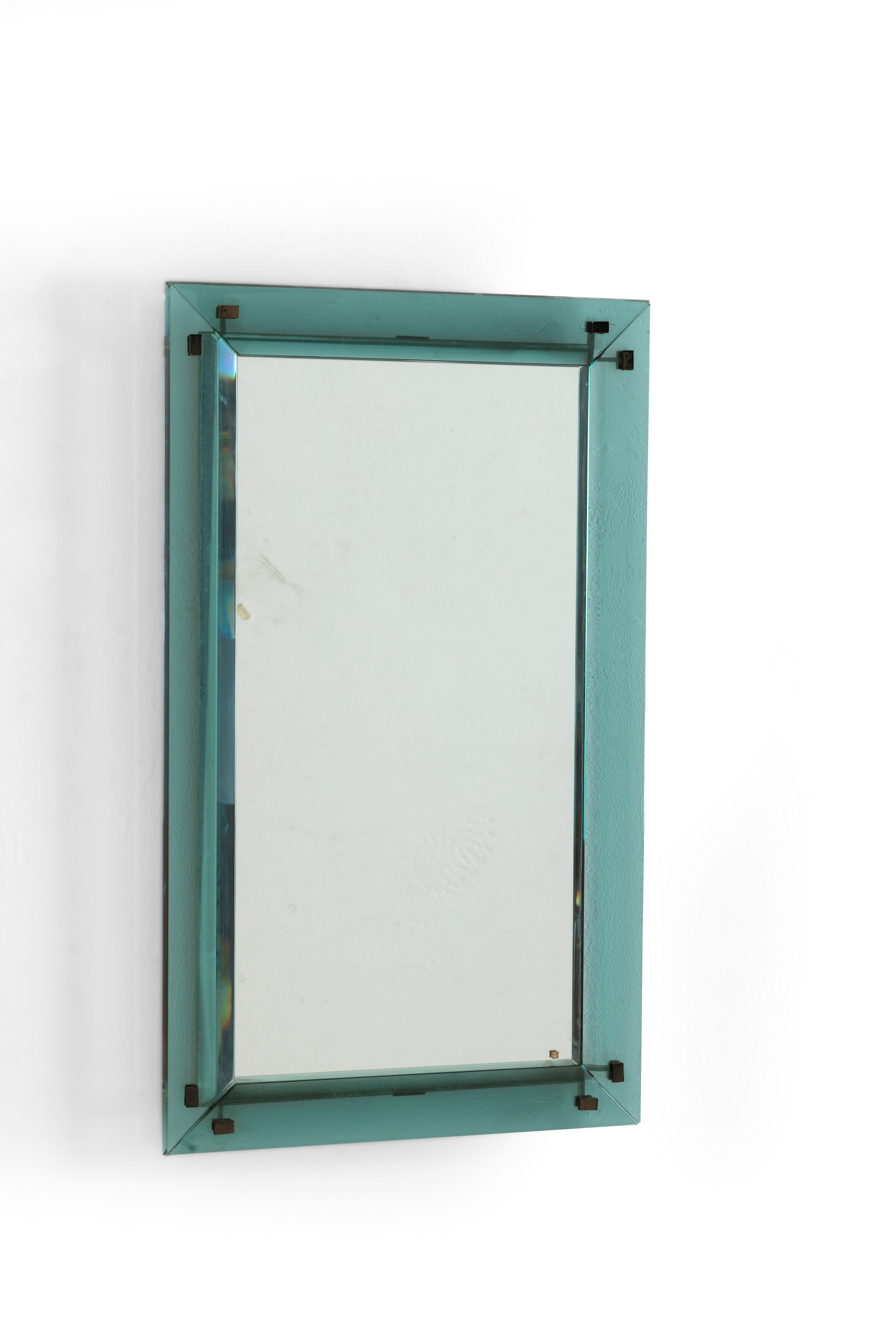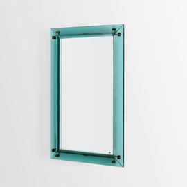 Cornice in cristallo molato e colorato, cristallo specchiato e dettagli in ottone nichelato.