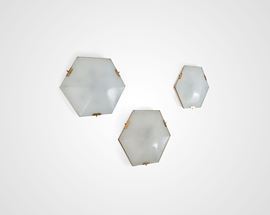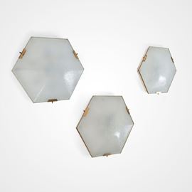 Struttura in ottone, metallo laccato e diffusore in vetro lunare.