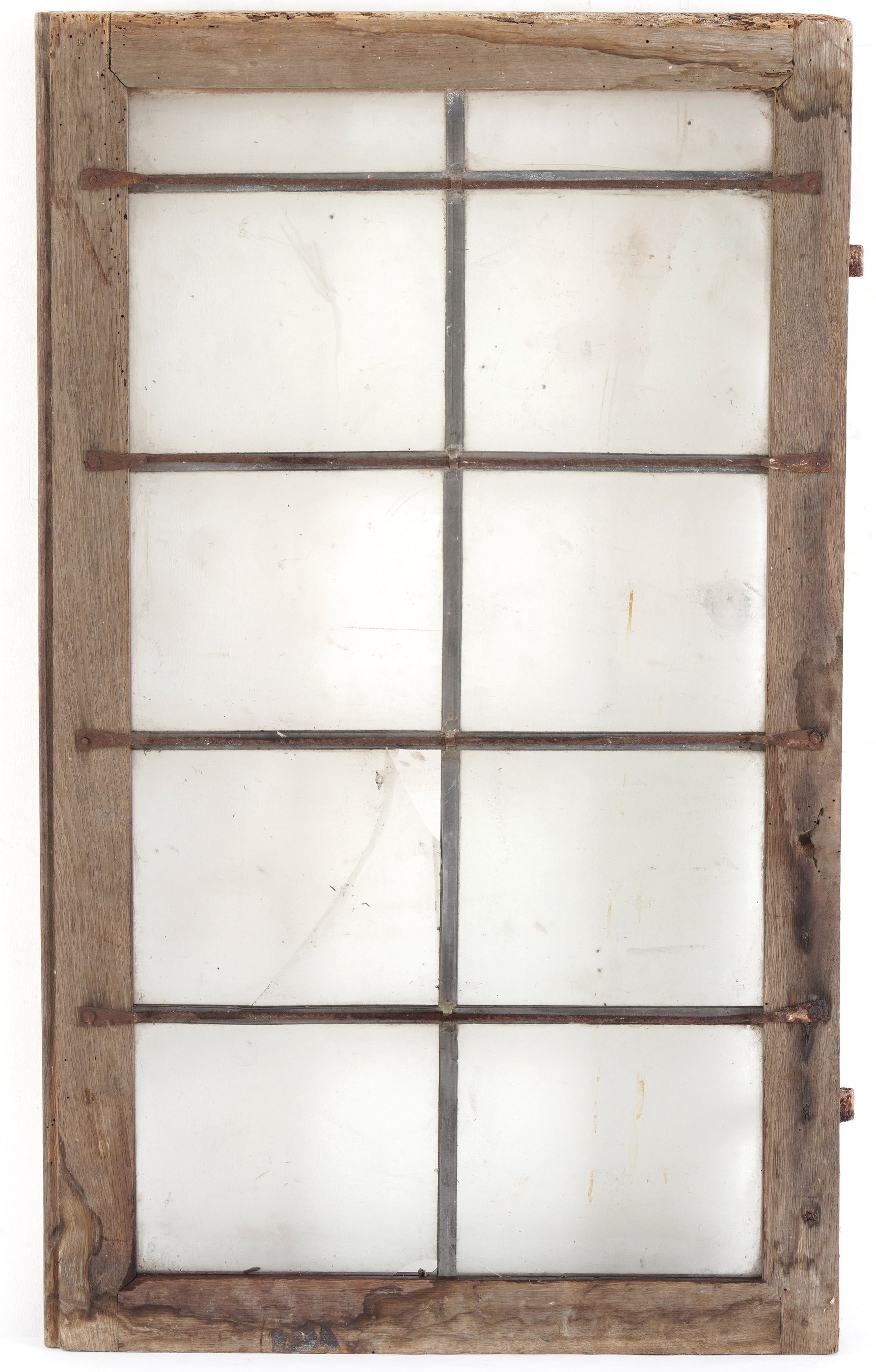 Anta di finestra in legno con griglia in ferro (rotture al vetro)