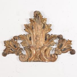Coppia di fregi in legno intagliato e dorato. XVIII secolo