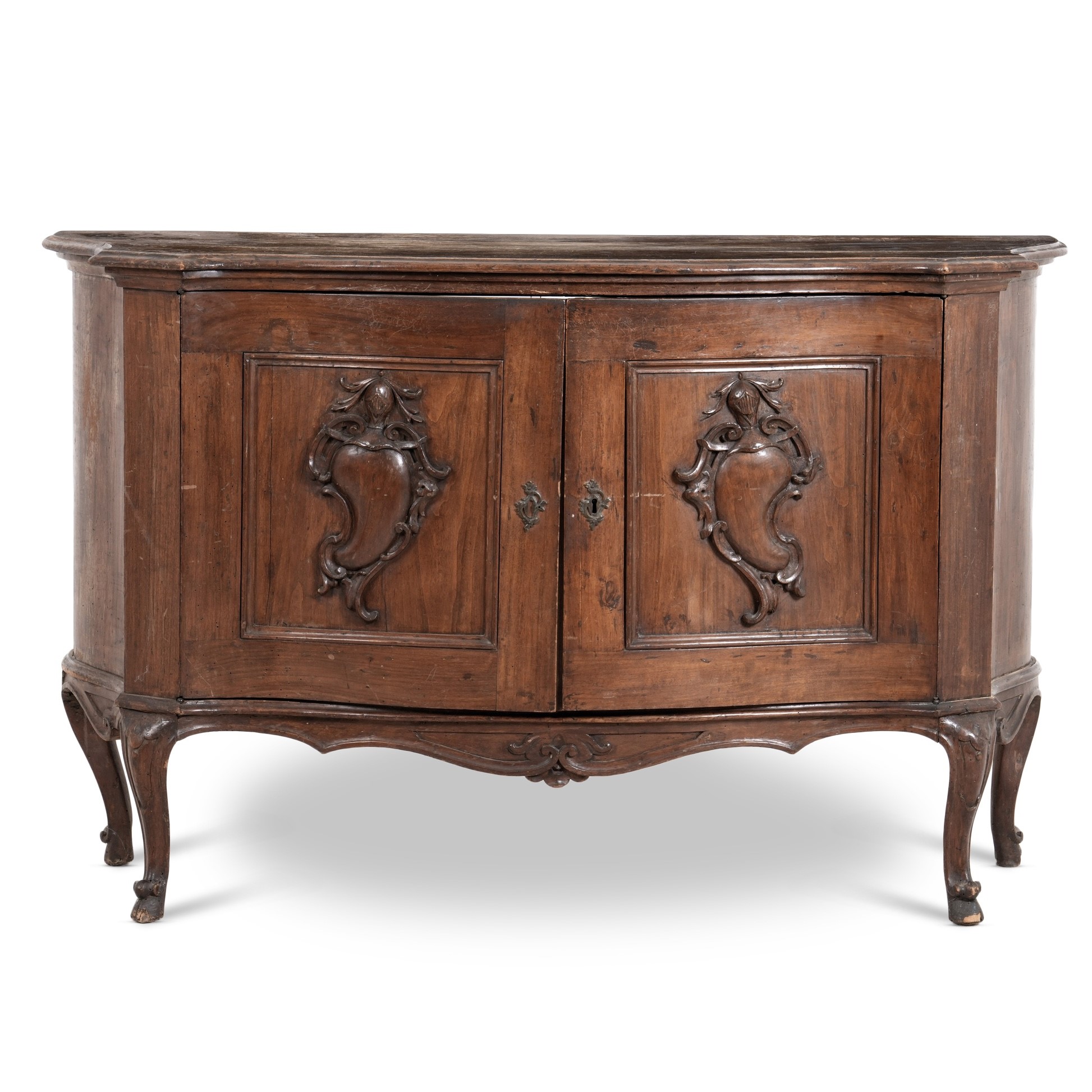 Credenza scantonata e intagliata. XVIII-XIX secolo