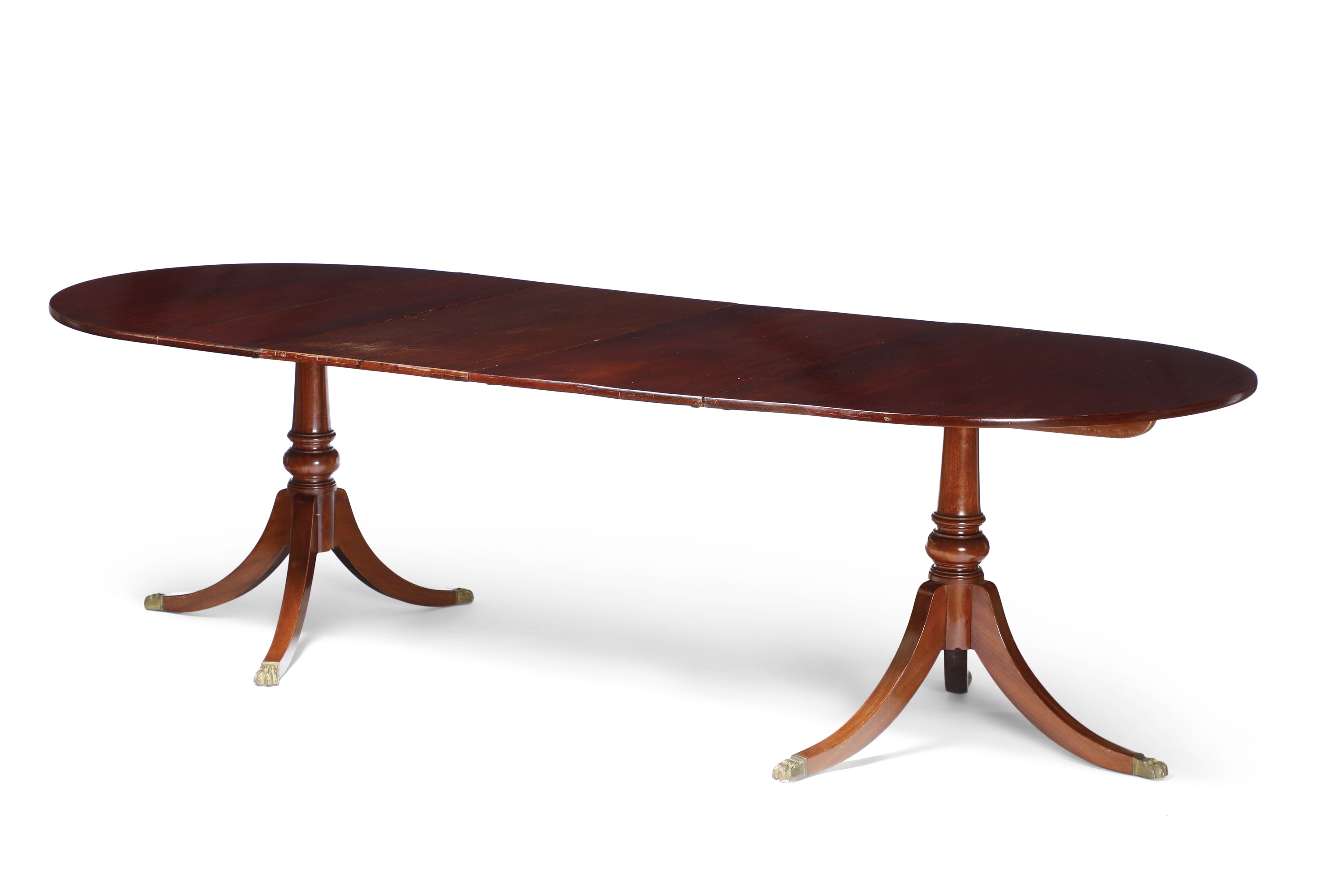 Gambe a colonne rastremate su sostegno tripode terminante a piedi ferini