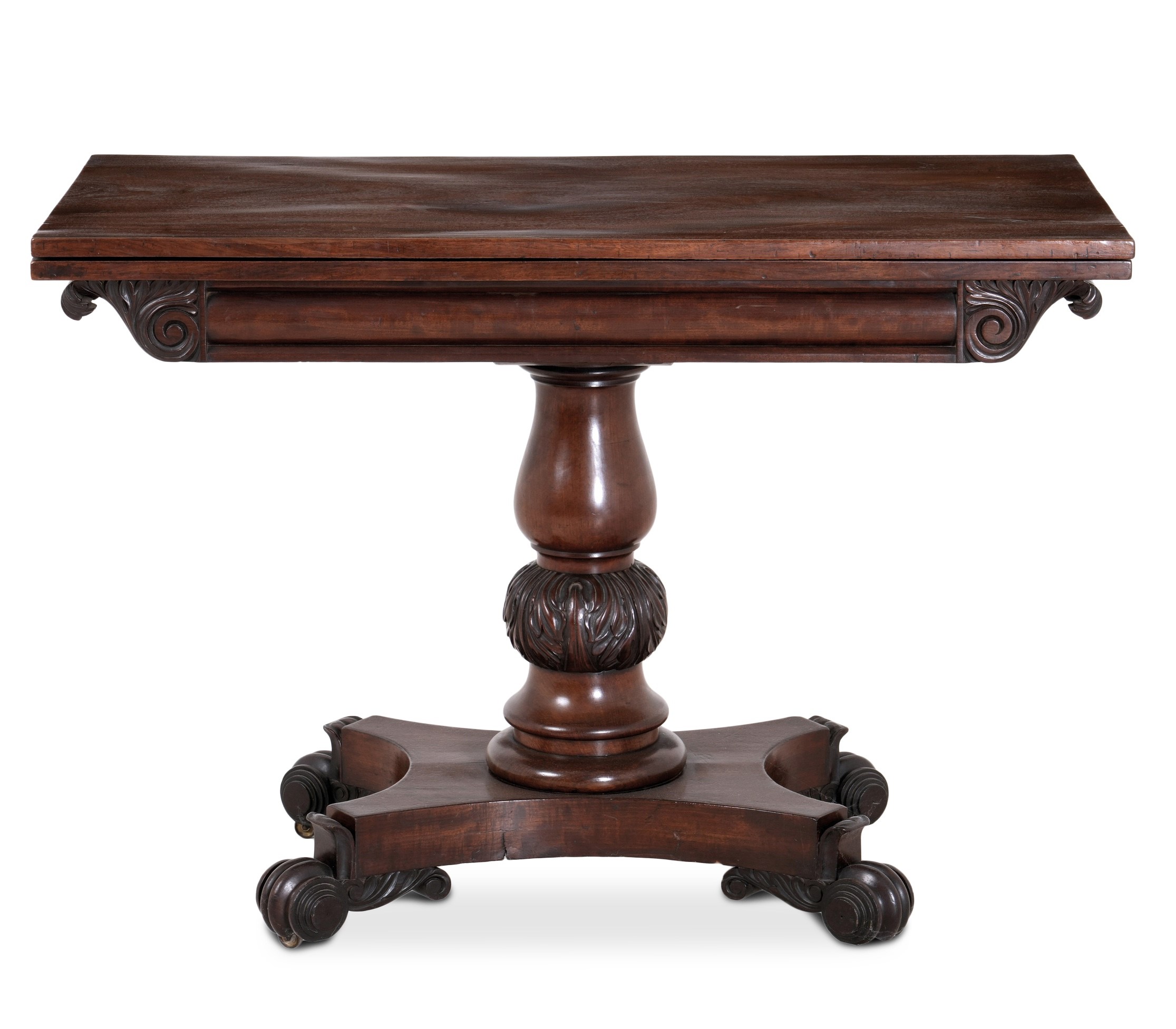 Tavolo in mogano intagliato con piano a libro, Inghilterra XIX secolo