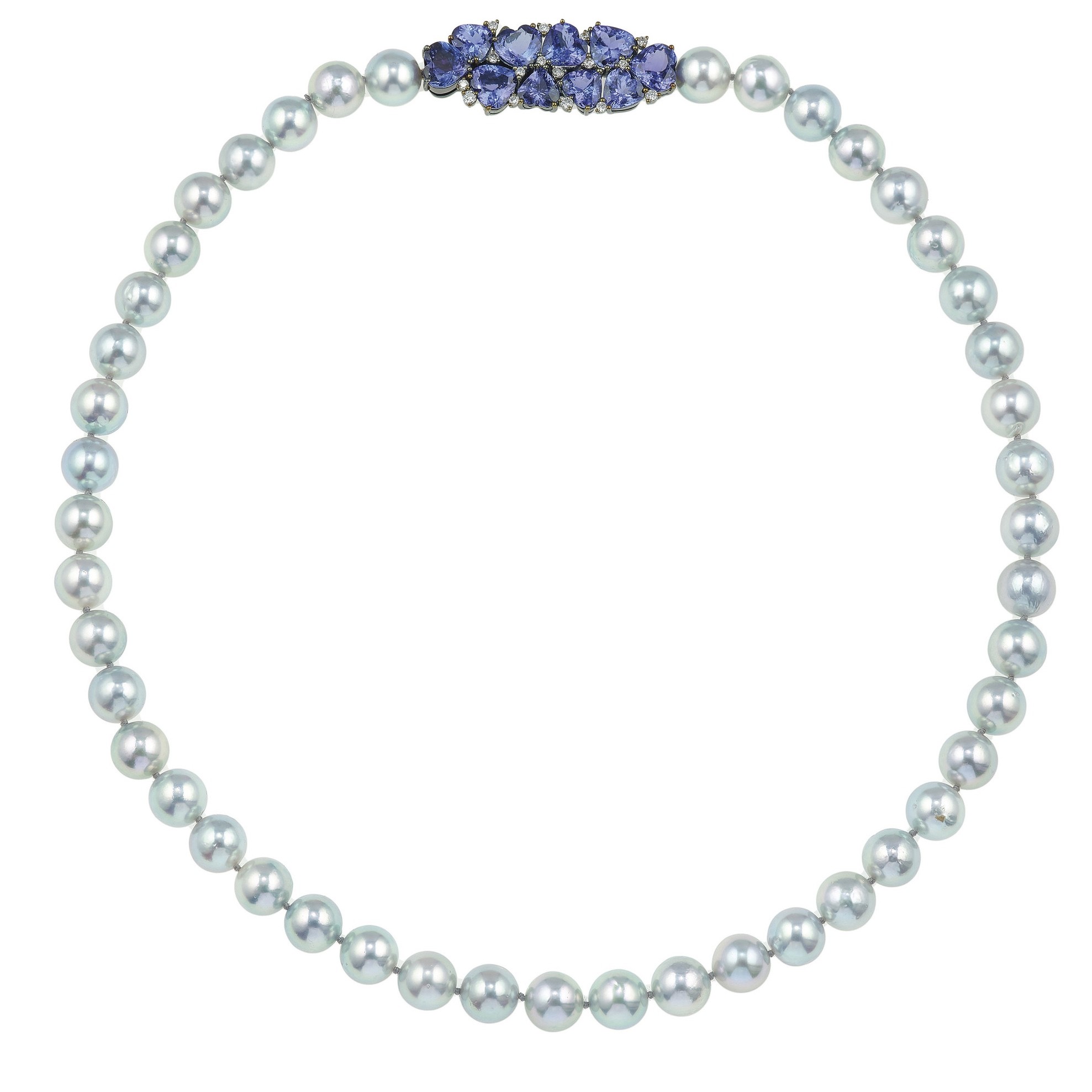 fermezza in oro 750/1000, brunito. Perle irradiate
