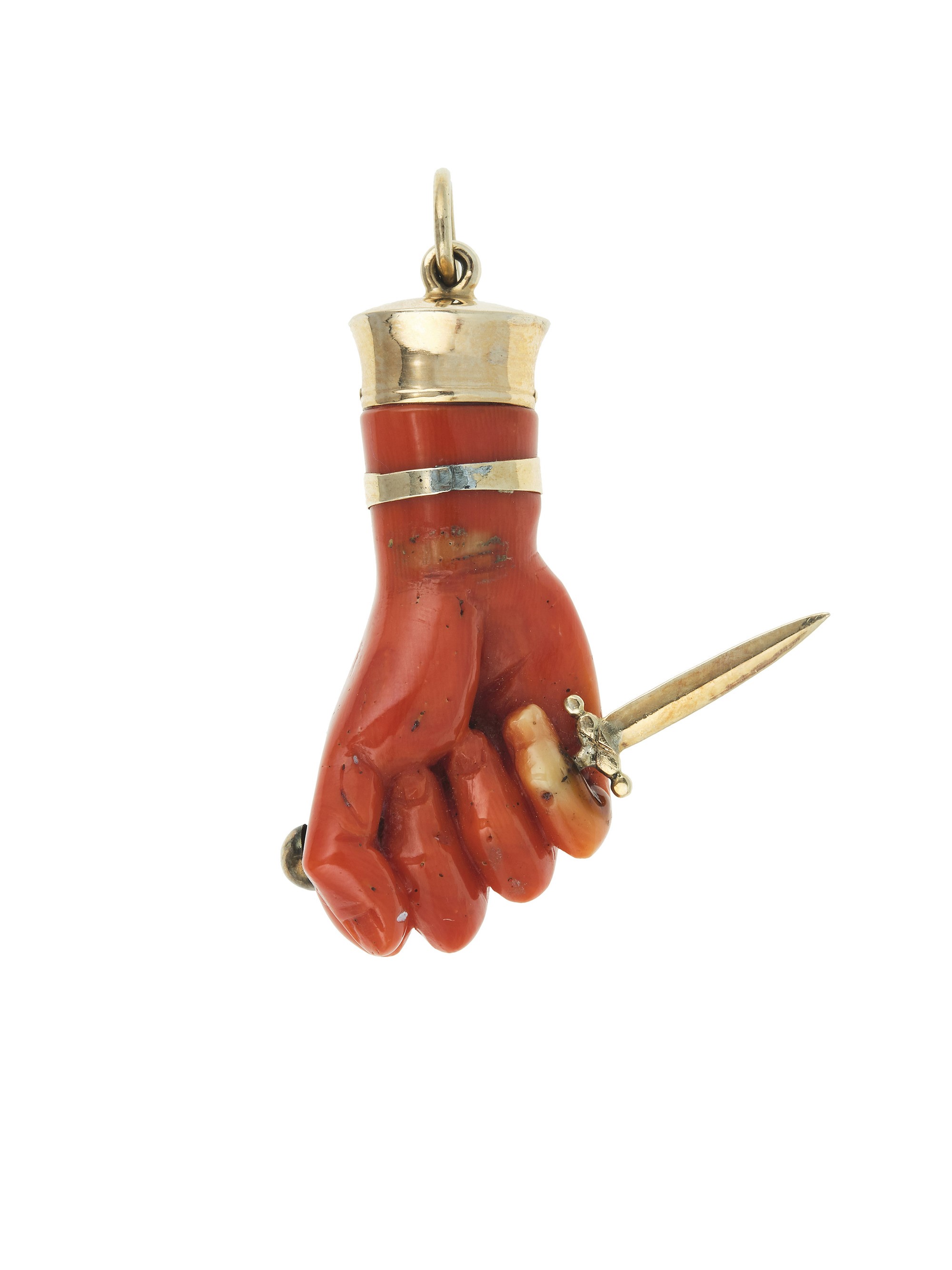 Pendente "Mano con pugnale" in corallo