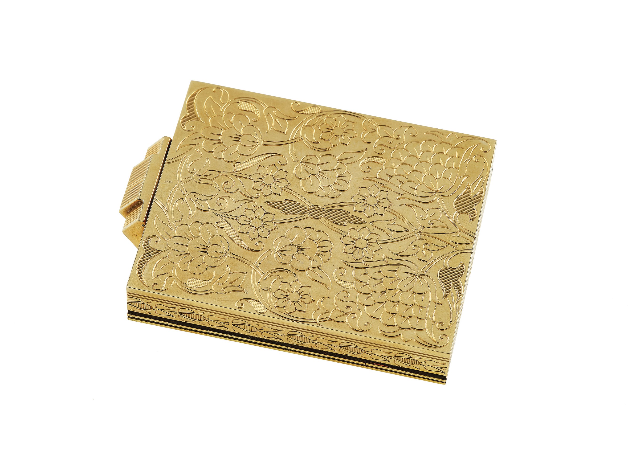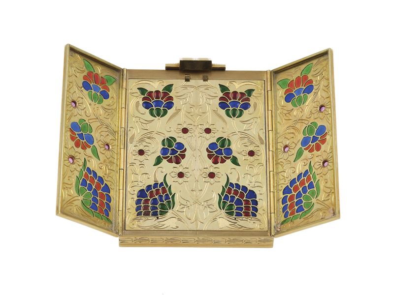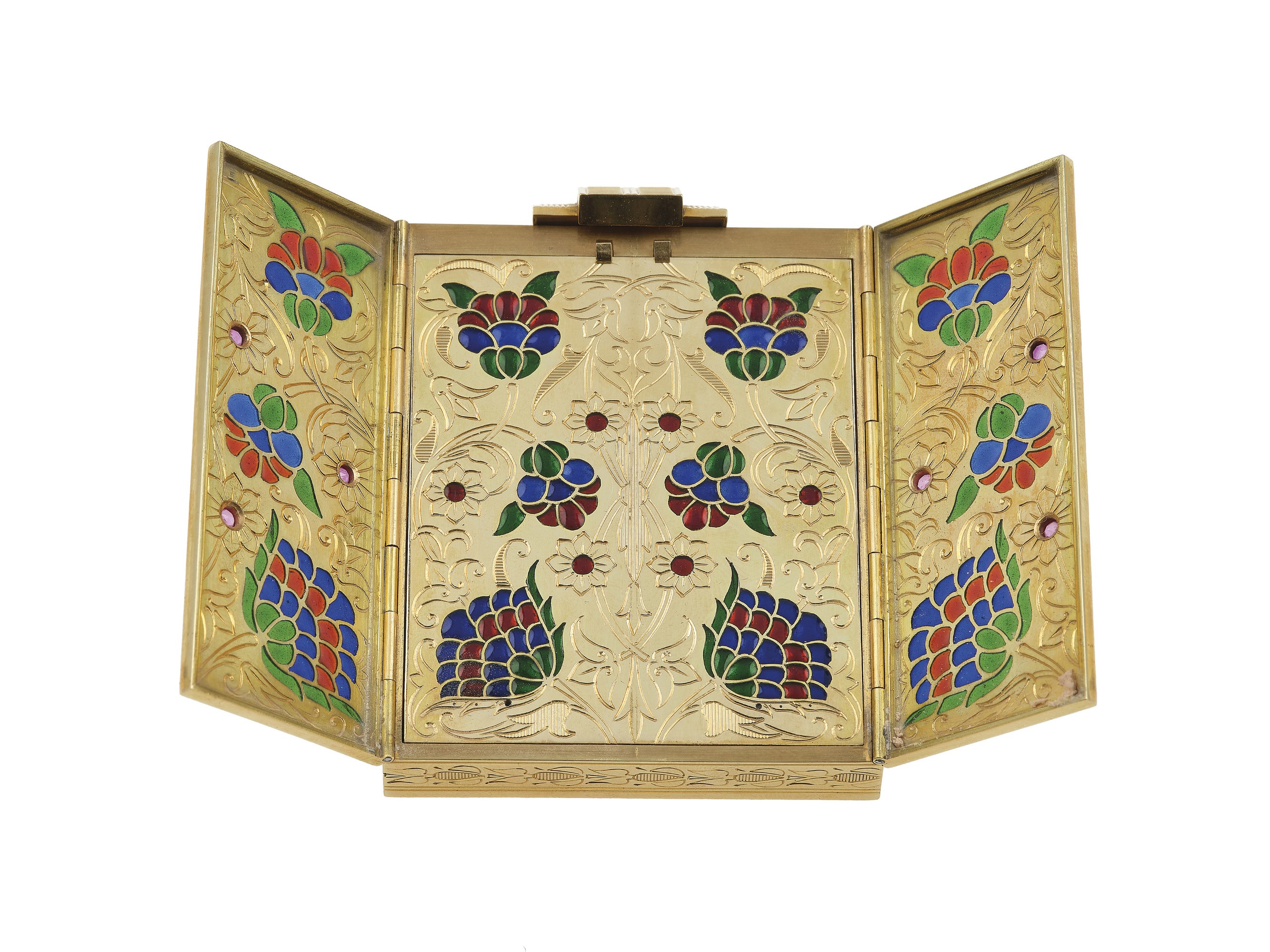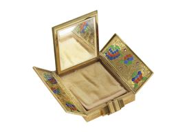 Vanity case con rubini taglio cabochon e smalto "plique-à-jour"