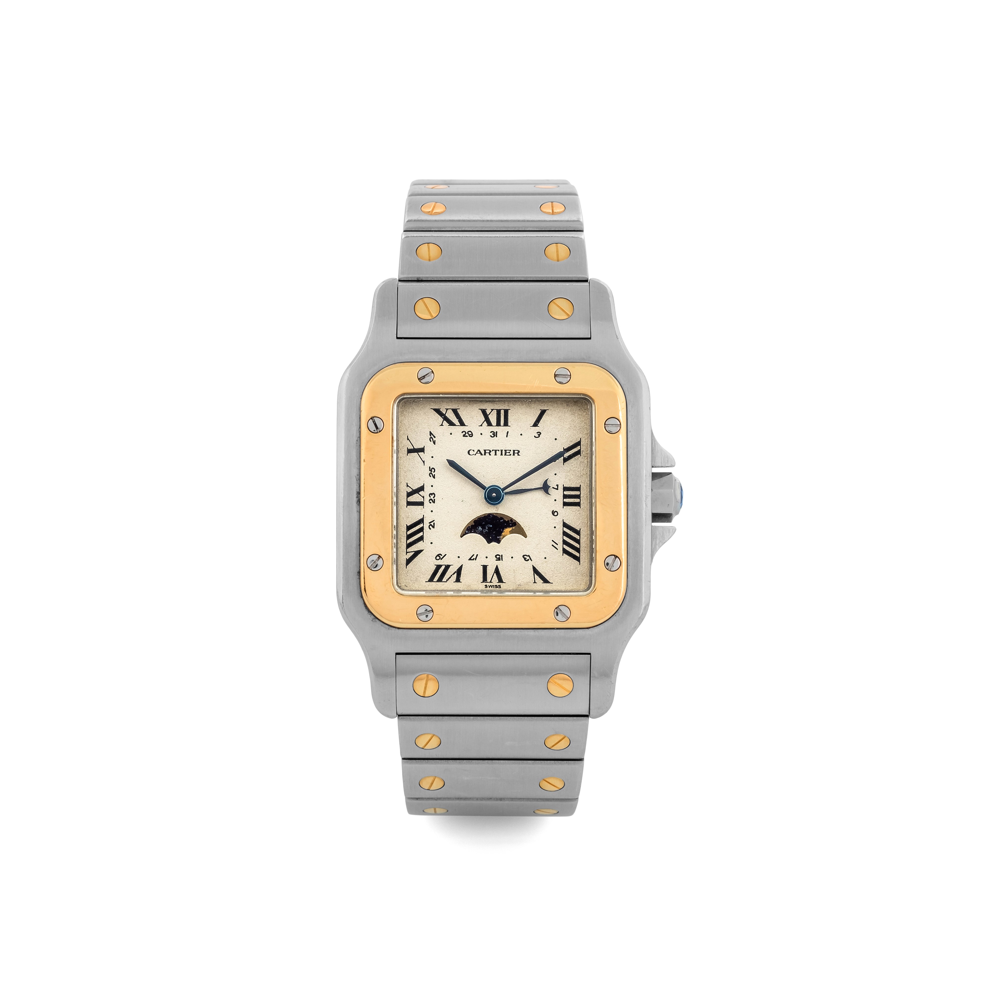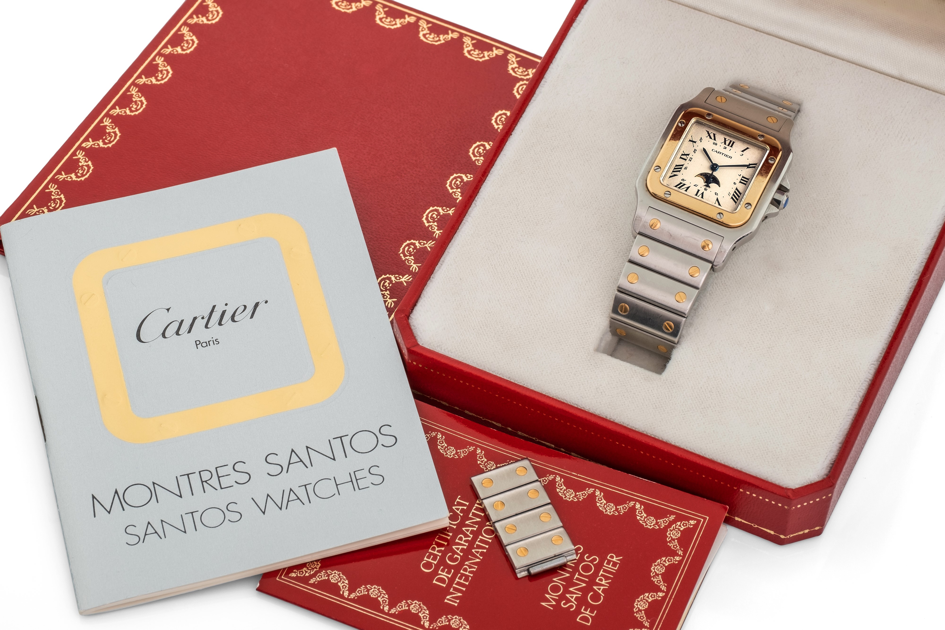 Santos Calendario Moonphase acciaio e oro, quadrante Argentè corredato da scatola e garanzia, circa 1990