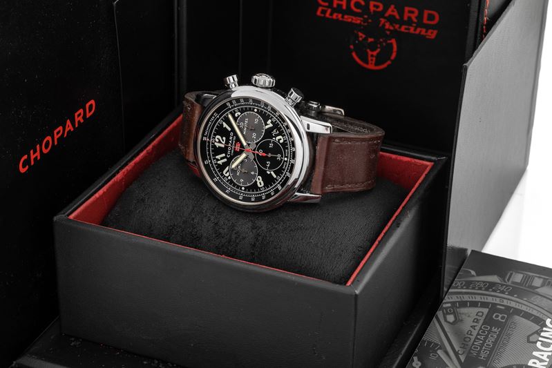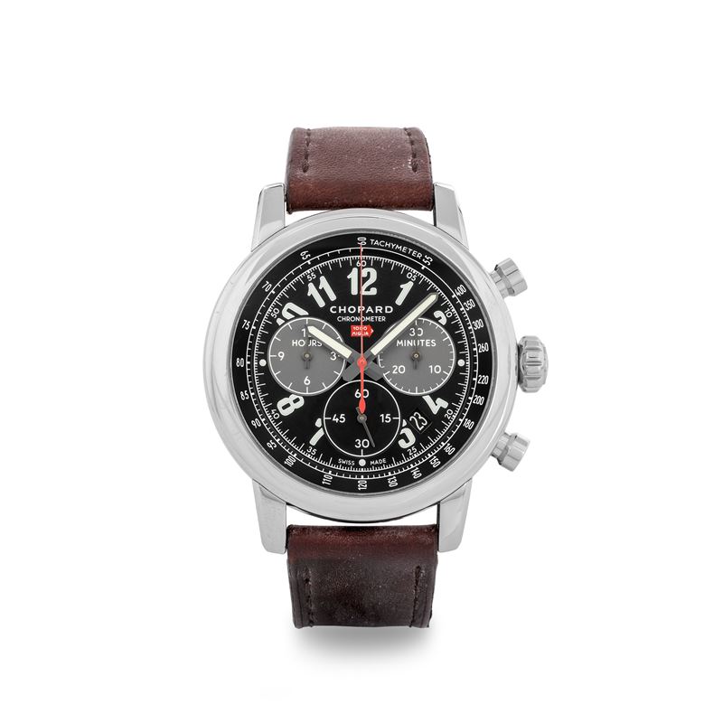 Mille Miglia Chronograph in acciaio, quadrante nero con scatola e garanzia, circa 2017