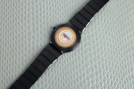 Rainbow edizione limitata realizzato in collaborazione con l'artista Yaacov Agam, cassa e bracciale in ceramica lucida, circa 1989