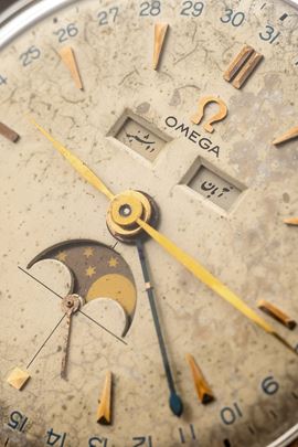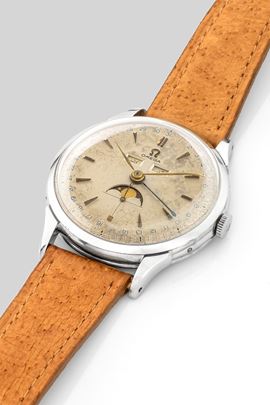 Cosmic "Arabic" ref 2486 in acciaio con calendario in lingua Araba e fasi lunari, circa 1947