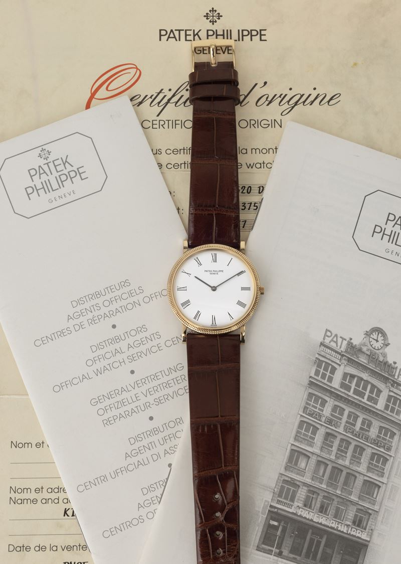 Calatrava Clos de Paris ref 3520 in oro giallo 18k, quadrante bianco numeri Romani, carica manuale con garanzia originale