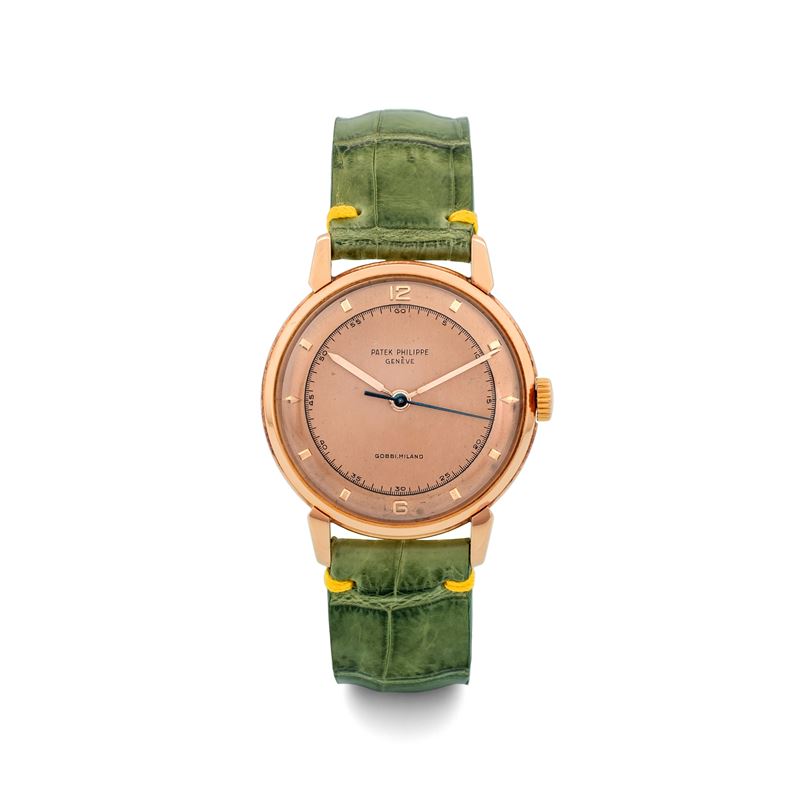 Calatrava ref 2482 in oro rosa "Anse a Ragno" in oro rosa quadrante rosa personalizzato per "Gobbi", circa 1950