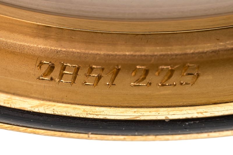 Il presente modello appartiene alla referenza 3971 che a differenza della più conosciuta referenza 3970 è equipaggiato da un fondello a vite a vista che consente di ammirare il fantastico calibro meticolosamente rifinito.