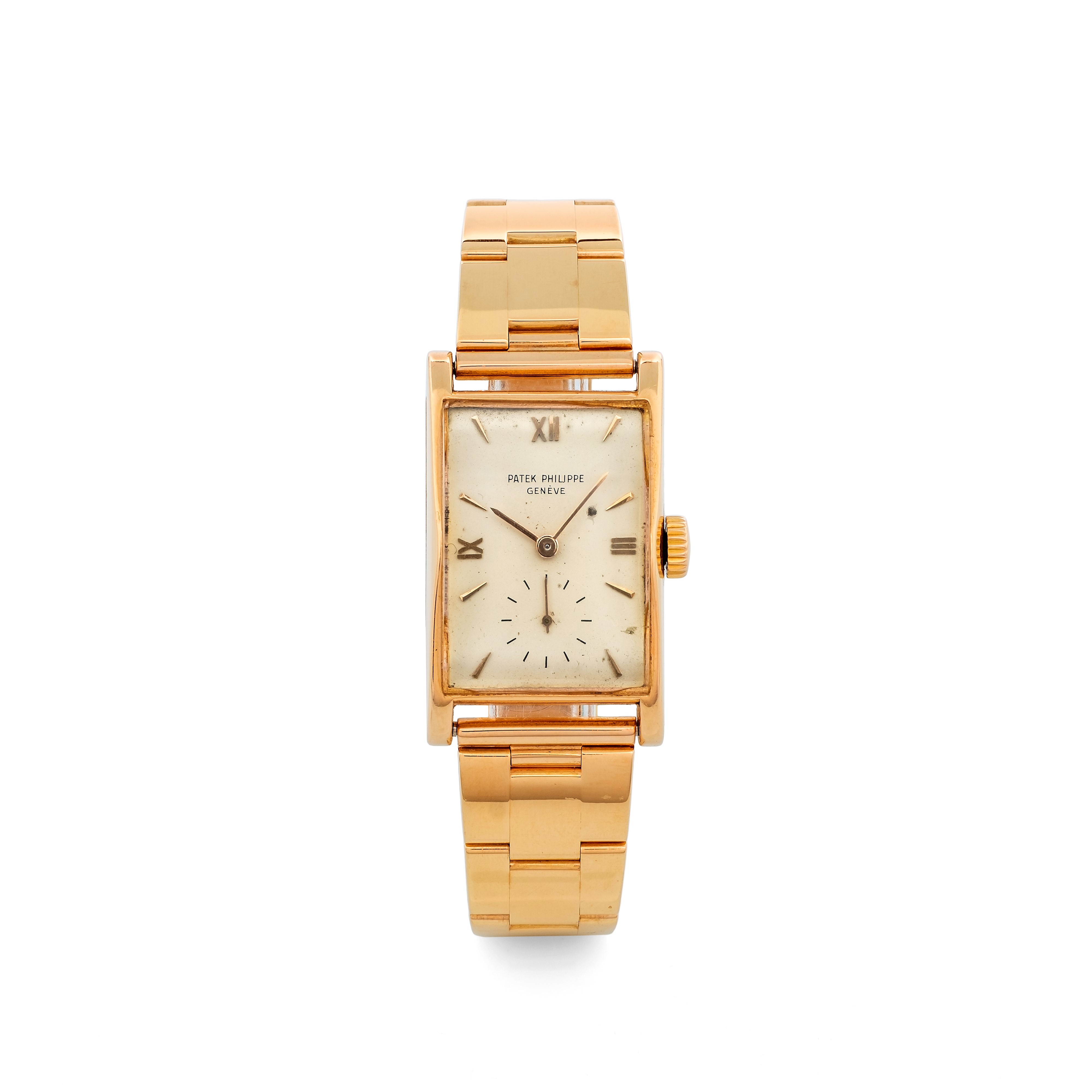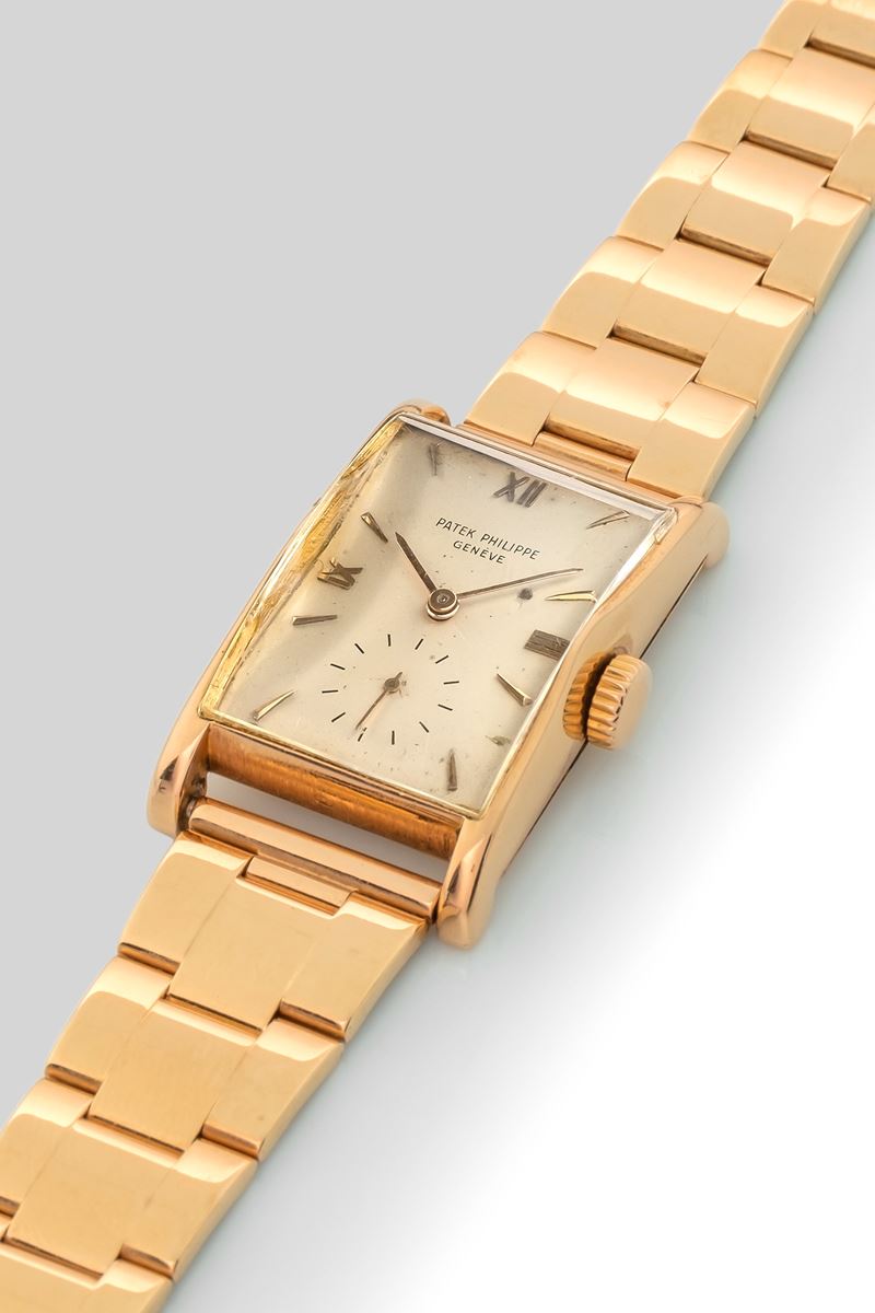 "Parentesi graffa" ref 1588 in oro rosa 18k, quadrante Argentè piccoli secondi, circa 1950
