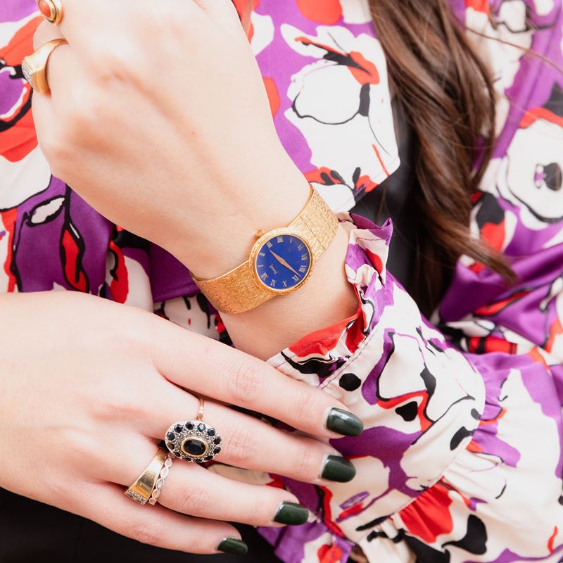 Classique Lady in oro giallo 18k, quadrante lapislazzuli carica manuale, con scatola e maglie aggiuntive