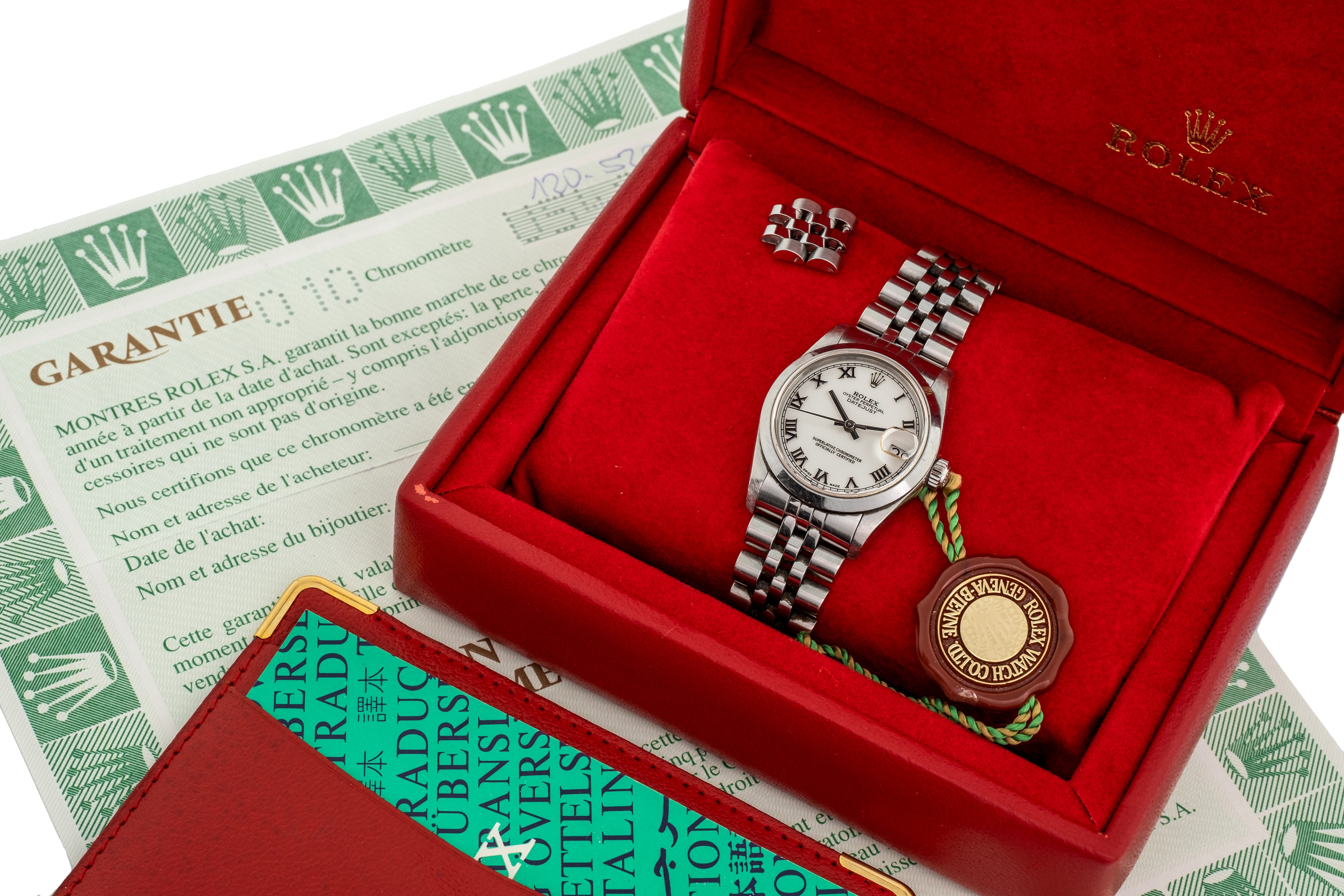 Datejust ref 68240 in acciaio, bracciale Jubilee, scatola garanzia e due maglie aggiuntive, circa 1998