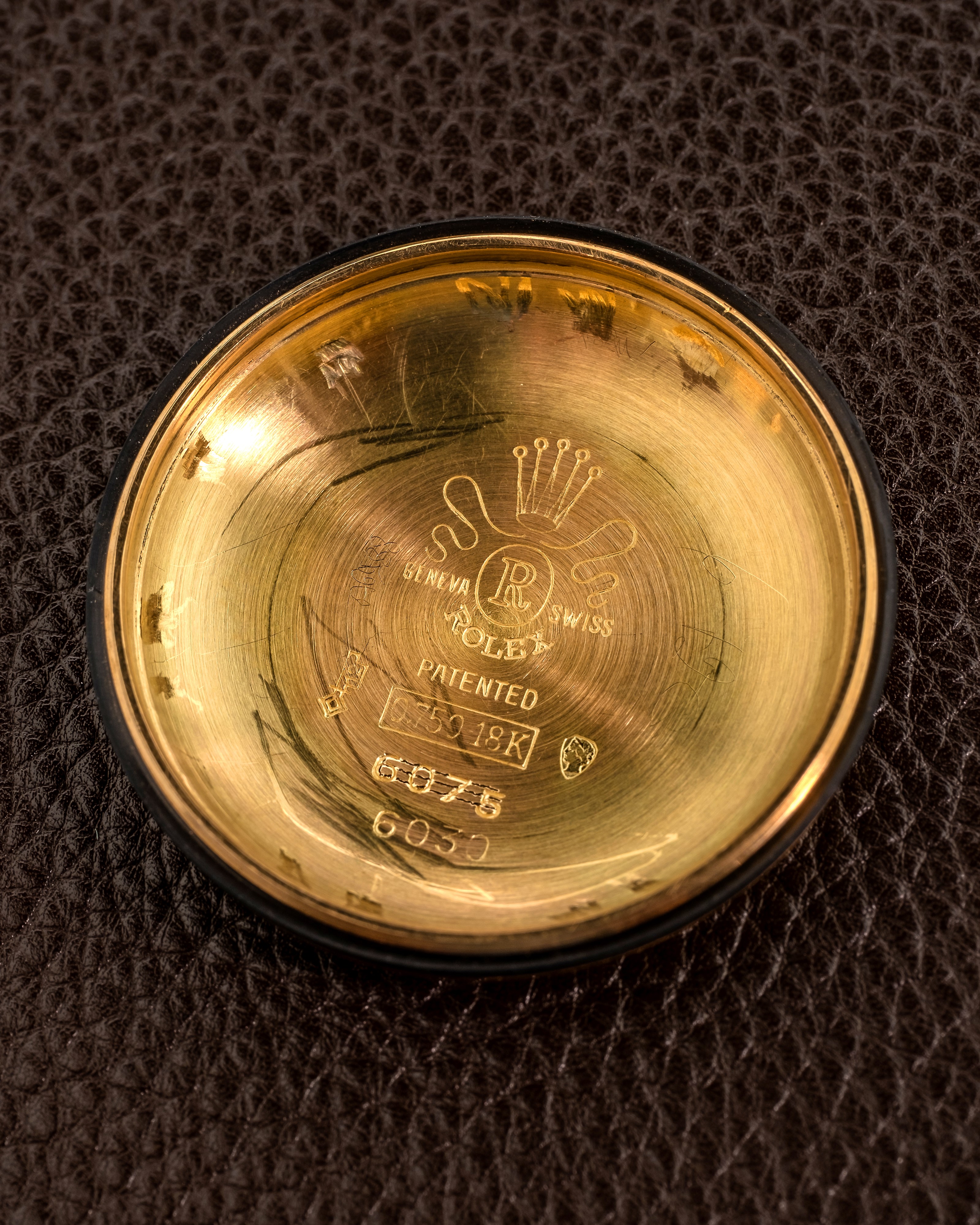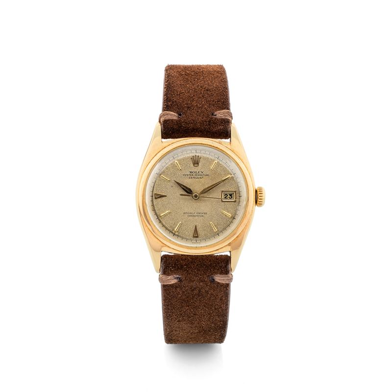 Ovettone ref 6030 in oro giallo 18k, datario roulette lancette a foglia, circa 1950