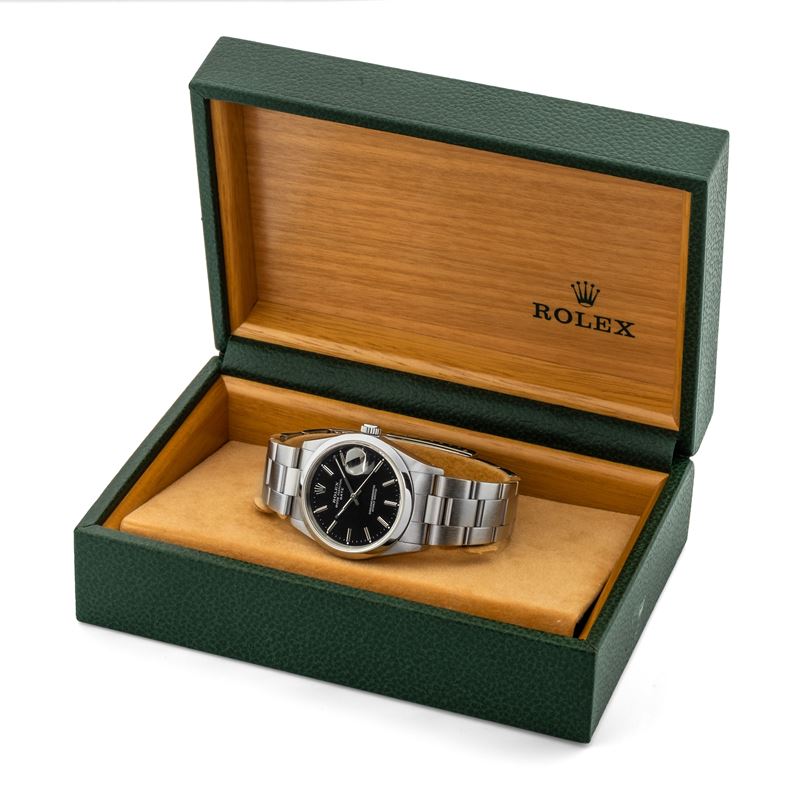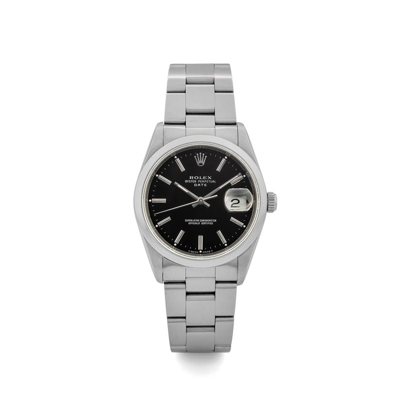 Oyster Perpetual Date ref 15200 in acciaio, quadrante nero, circa 1989