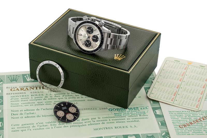 Presentato per la prima volta all'asta, è completo di tutti gli accessori originali, compreso il certificato di garanzia originale e scatola. Si tratta di un esemplare estremamente raro e senza tempo per chi è alla ricerca di un Cosmograph Daytona da collezione.