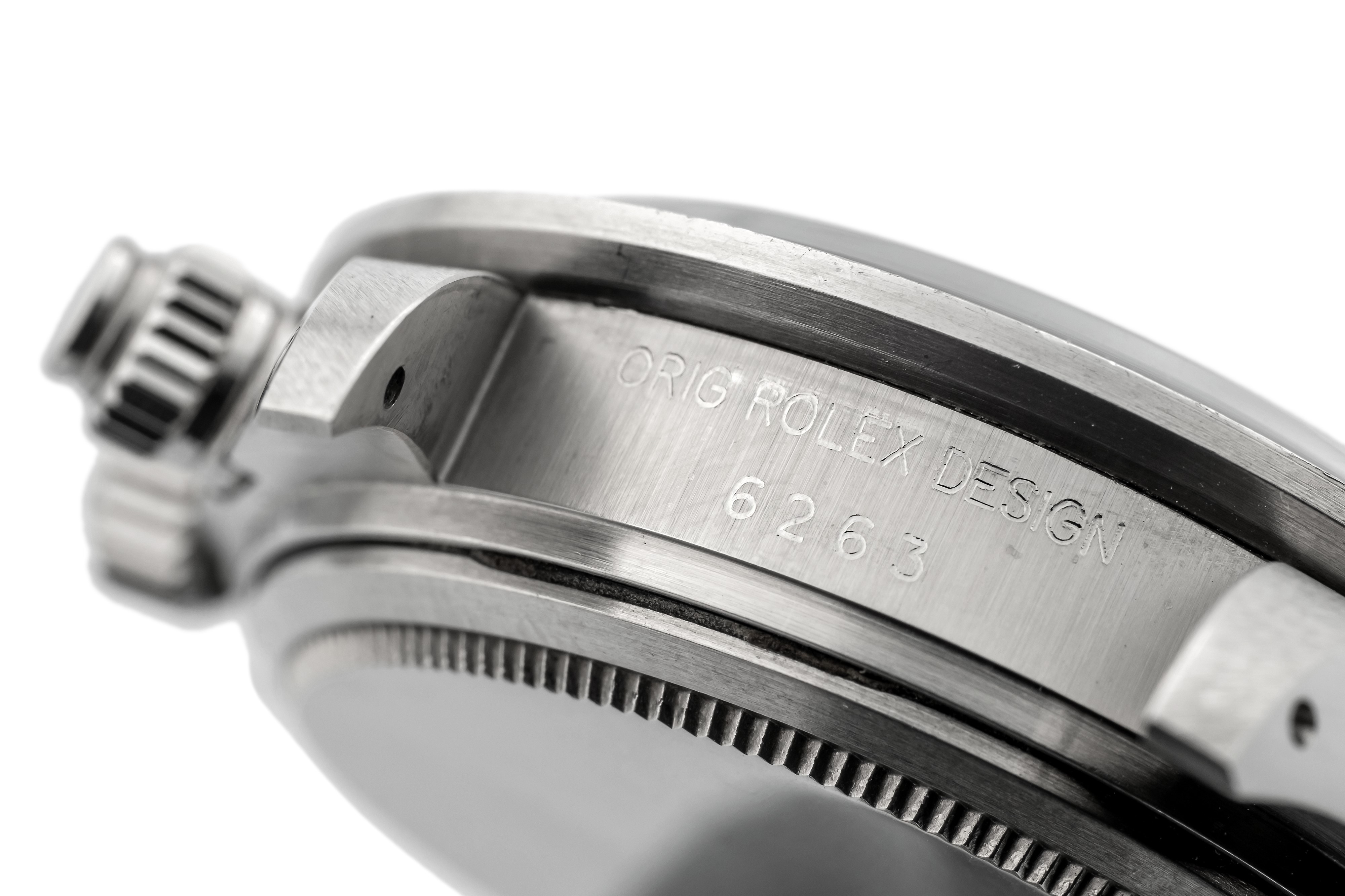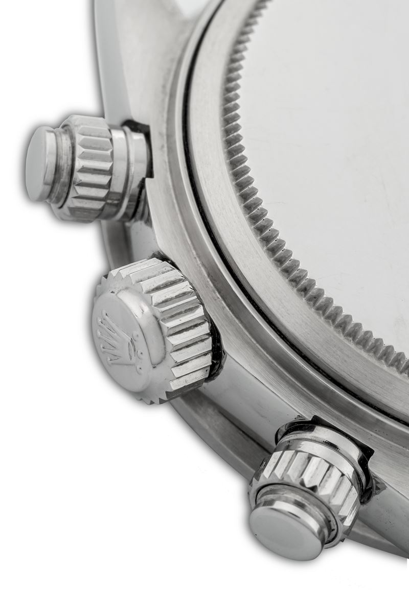 Presentato in condizioni quasi immacolate il presente esemplare è caratterizzato dal più richiesto quadrante “Big Red” che si differenzia dai precedenti grazie alla scritta rossa Daytona molto evidente sopra il contatore a ore 6. Oltre al quadrante Argentè il presente orologio è accompagnato anche da un quadrante nero “Big Red” e da una ghiera in acciaio per 6265.