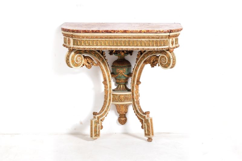 Consolle a goccia in legno intagliato, laccato e dorato. XIX secolo