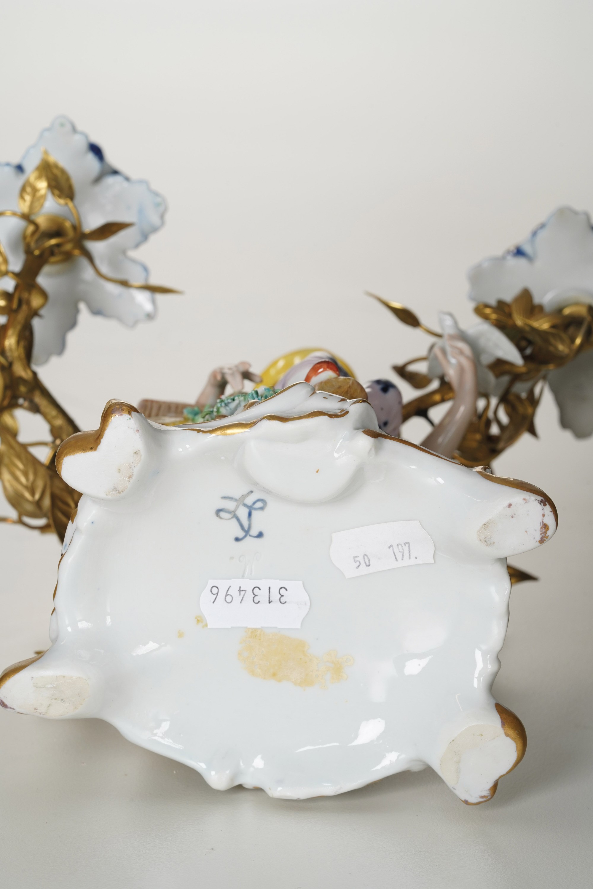 Porcellana e bronzo dorato. Marca: pseudo marca di Sèvres. Altezza cm 26. Conservazione: ottima