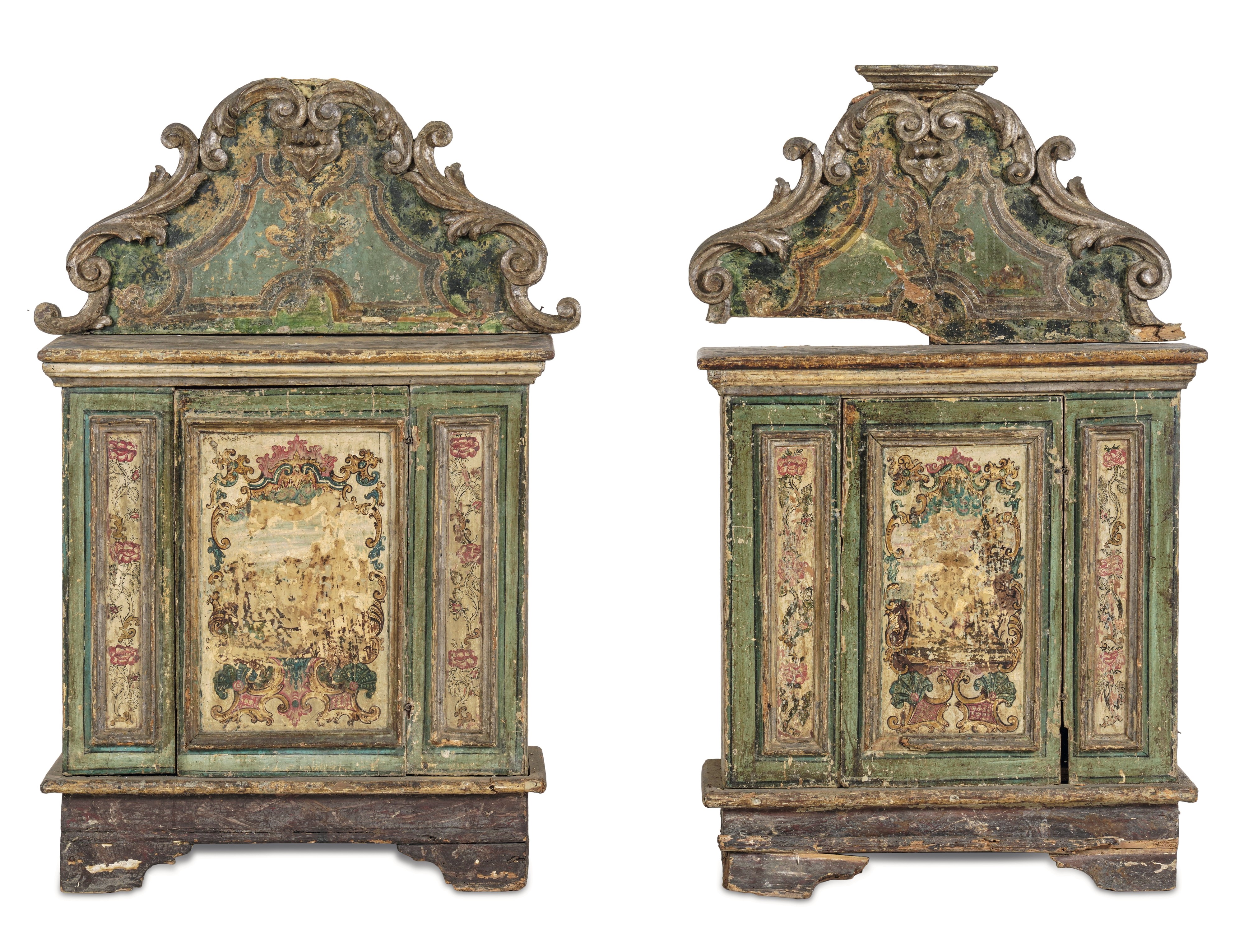 Coppia di credenze con alzata dipinte. Italia centrale, XVIII secolo