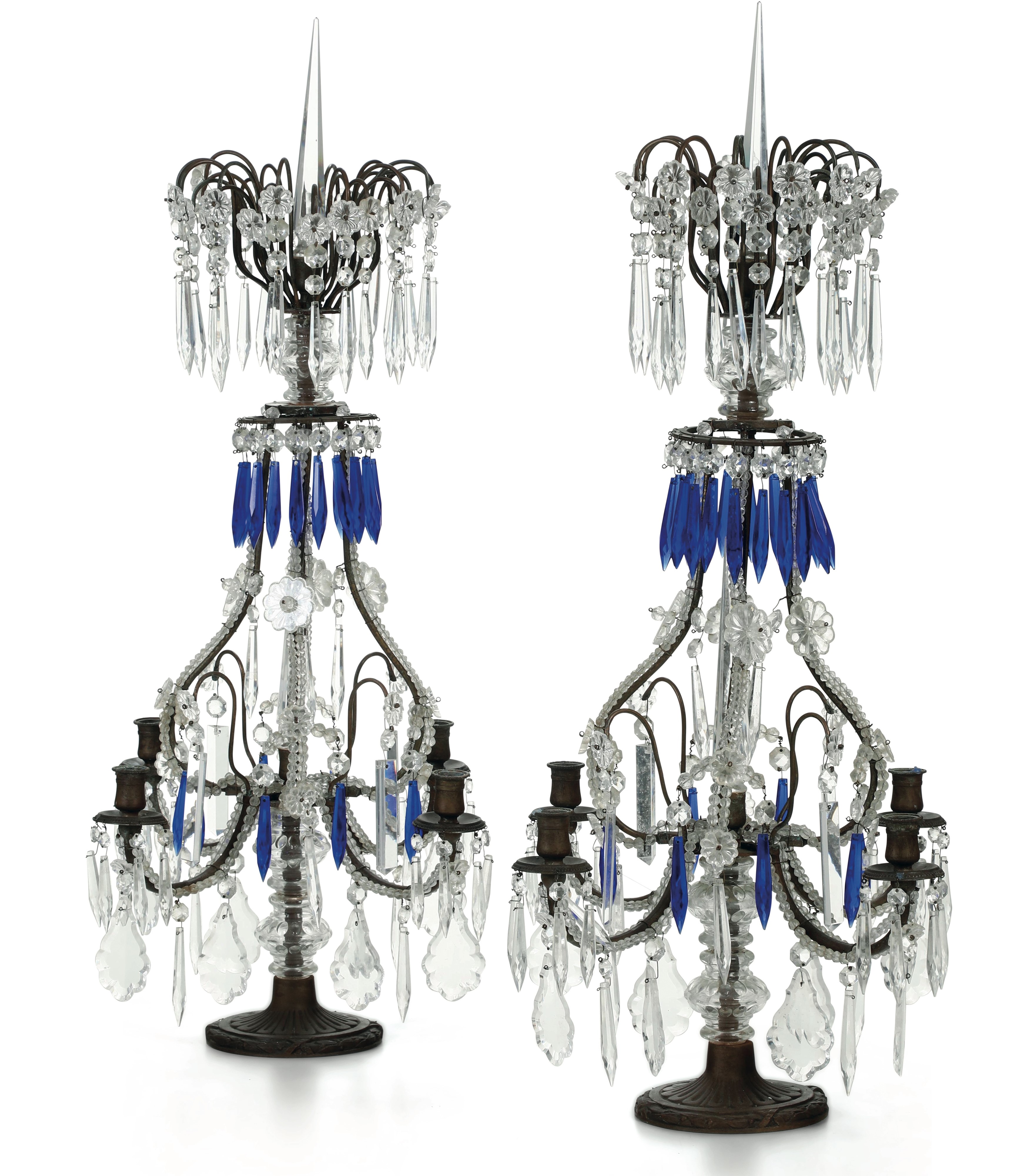Coppia di girandoles in bronzo e cristallo. XIX-XX secolo