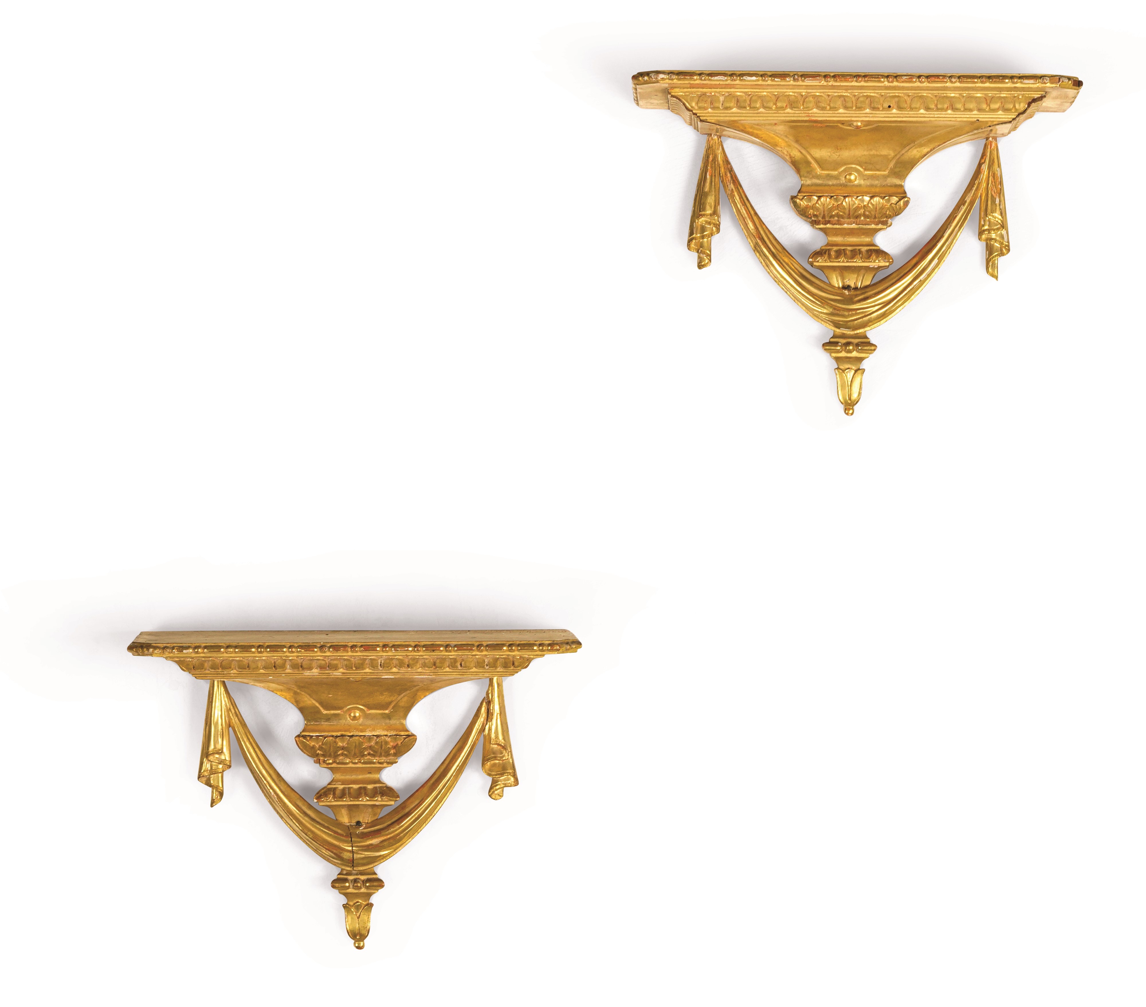 Coppia di mensole in legno intagliato e dorato. XIX secolo