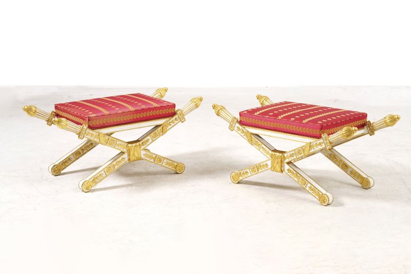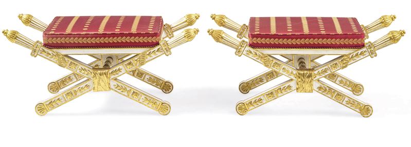 legno intagliato, laccato e dorato a foggia di gladii incrociati, decori a motivi vegetali