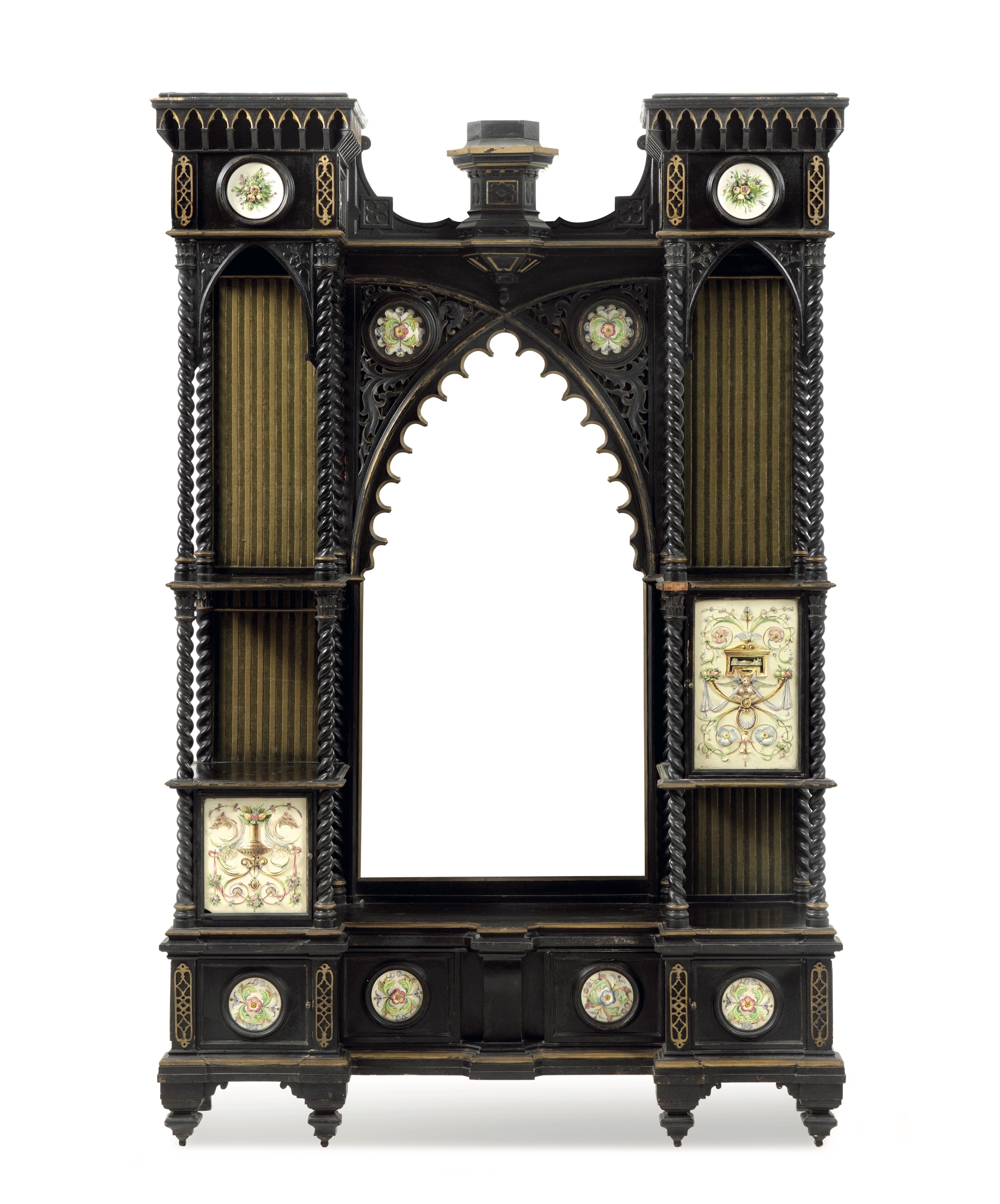 Etagere neogotico in legno ebanizzato. XIX-XX secolo