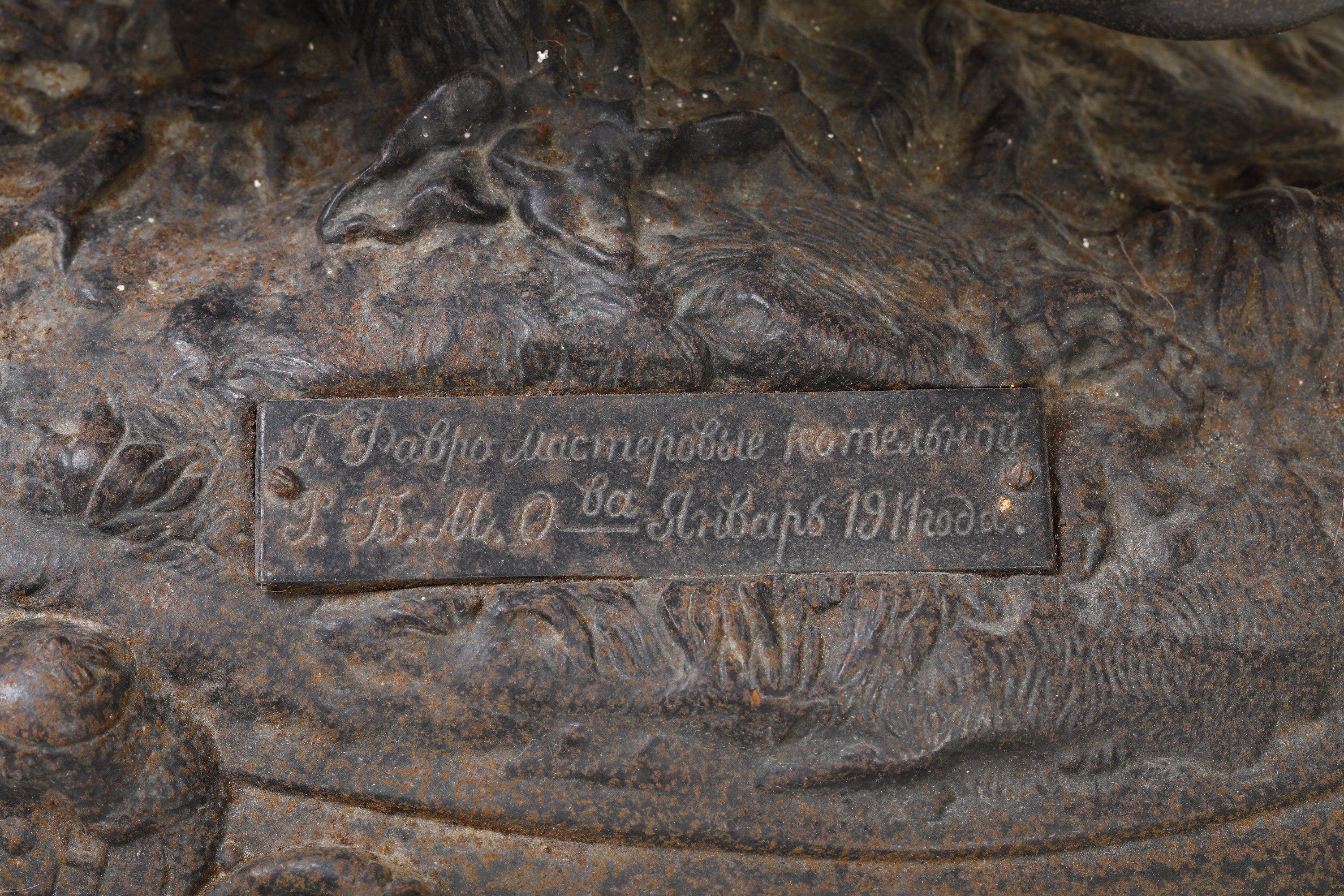 dedica e iscrizione in cirillico alla base: Operai dell’officina T.Favreau. P.B.M. Gennaio 1911