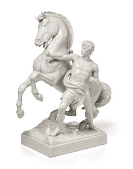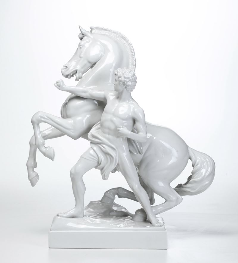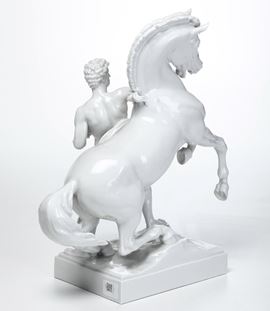 Questo modello è ripreso da un disegno dello scultore Josef Lax (Vienna 1851-1909), famoso per i due gruppi in bronzo, raffiguranti domatori di cavalli, che si trovano sulla rampa del Parlamento di Vienna