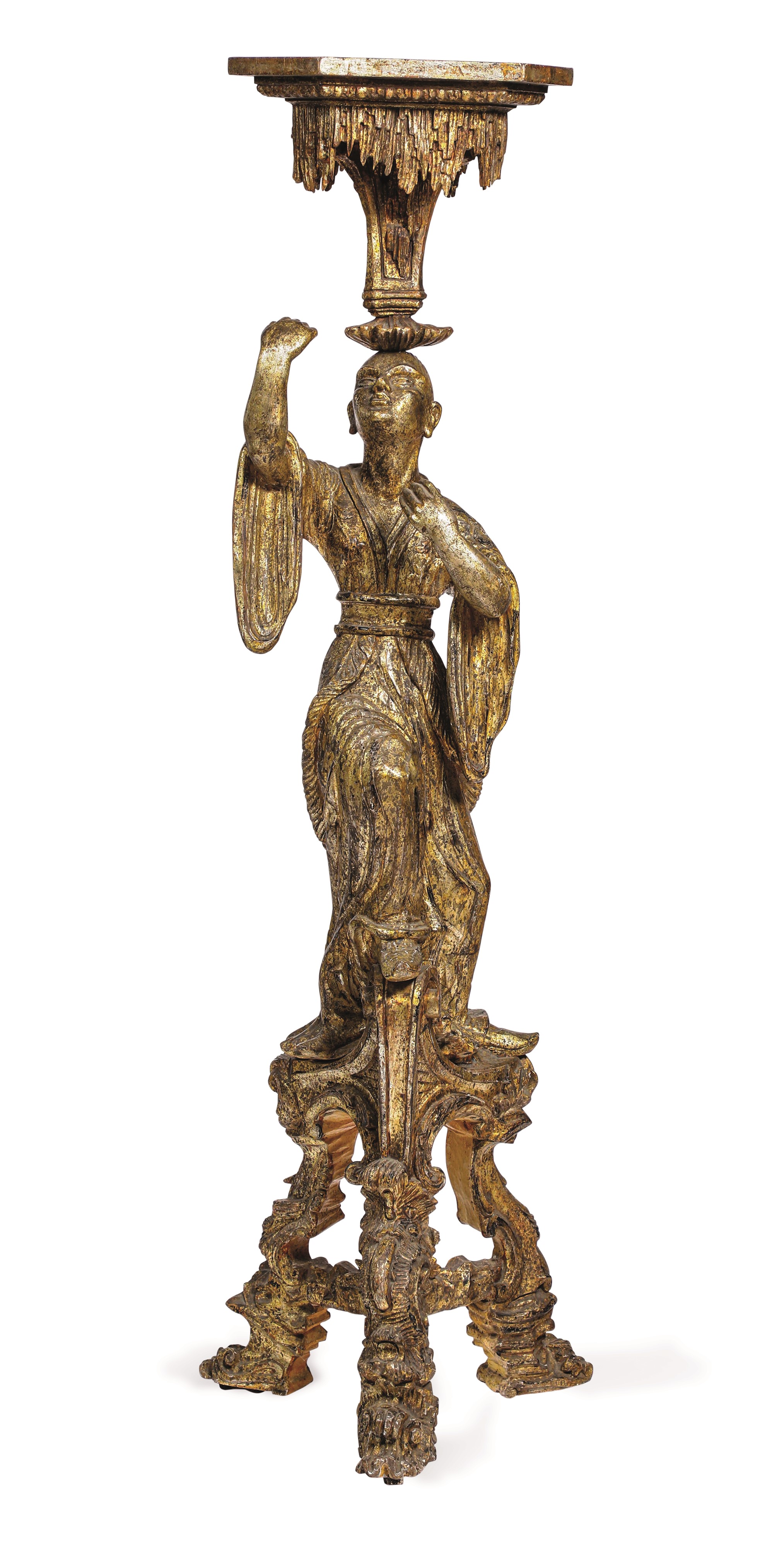 Gueridon in legno scolpito e dorato a mecca. Venezia, XIX secolo