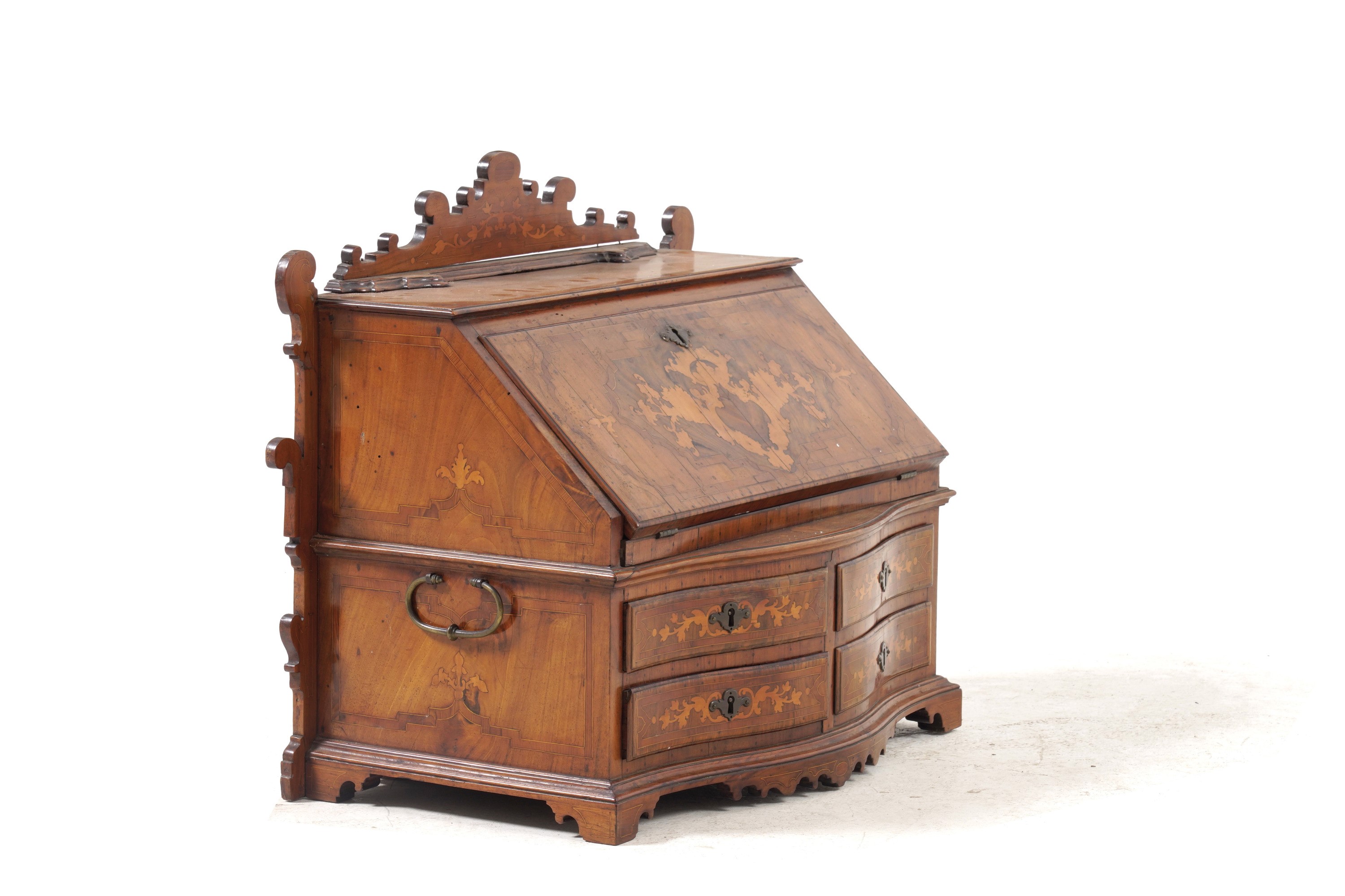 Modellino di ribalta in noce intarsiato. XIX-XX secolo