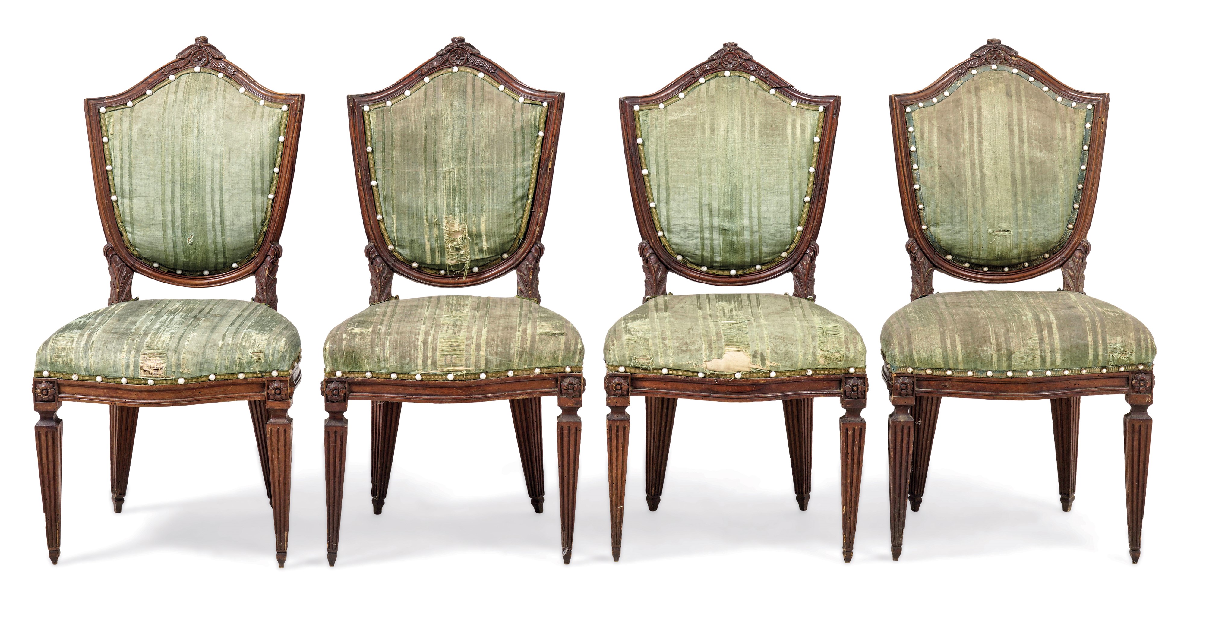 Quattro sedie in legno intagliato. XIX secolo