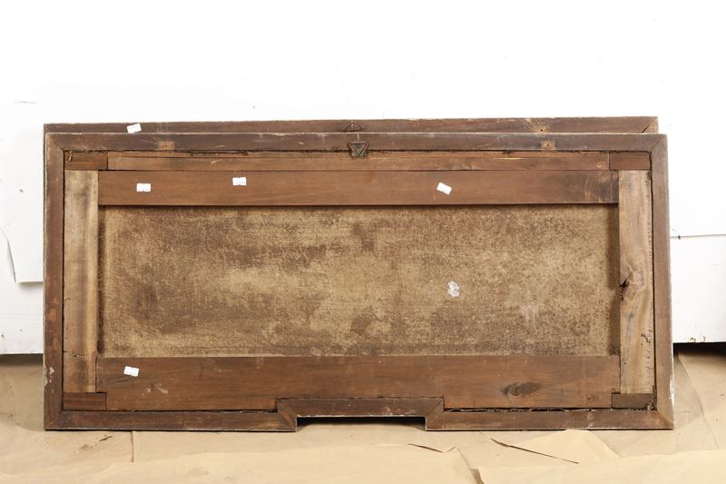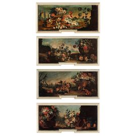 Scuola del XIX secolo Nature morte con composizioni di fiori entro paesaggi