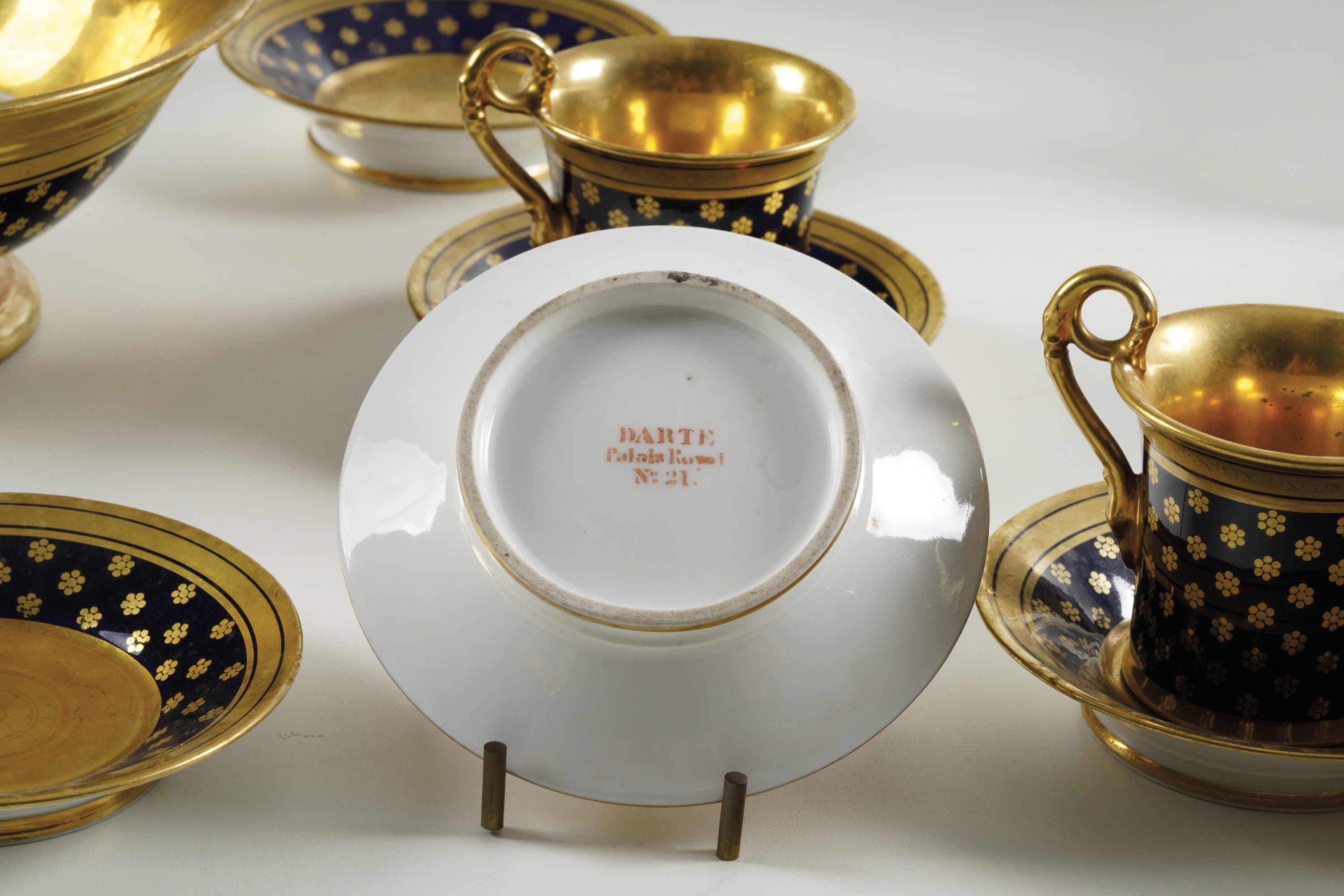 Porcellana decorata in blu di cobalto e oro. Marca: "Darte Palais Royal N° 21" in rosso. Conservazione: ottima