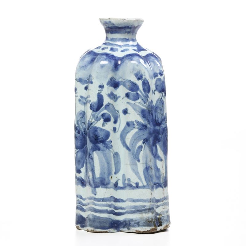 Per una bottiglia simile vedi A.Cameirana, Nuove Acquisizioni per il Museo della Ceramica, Seconda donazione del Principe Arimberto Boncompagni Ludovisi, Catalogo della mostra, Savona luglio-agosto 1995, p. 23, n. 7