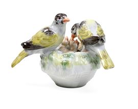 Gruppo di uccelli con il nido Meissen, terzo quarto del XX secolo