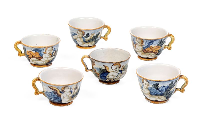 Sei tazze Castelli, probabilmente Nicola Cappelletti (1691-1767), XVIII secolo