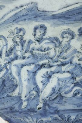 Il tema del colloquio fra vari personaggi posti all’interno dell’ambiente agreste gode dunque credito nelle scelte della produzione ceramica ligure riguardo all’iconografia, senza scadere però, come si nota qui e altrove, nella semplice ripetizione seriale del soggetto.