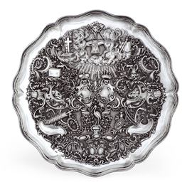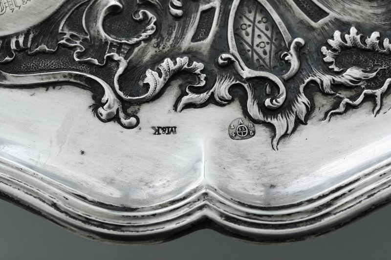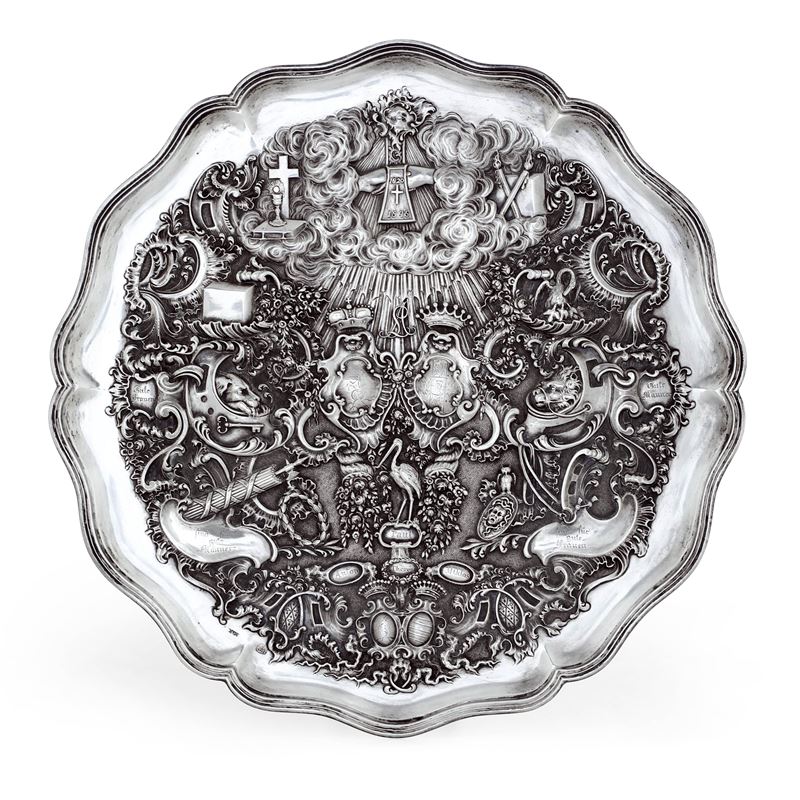 bordo mistilineo a volute e ricco decoro cesellato con emblemi sacri e profani commemorativi (1820-1845)