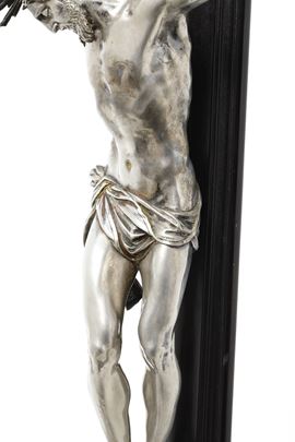 Raffinato Corpus Christi in argento fuso a cera persa e finemente cesellato, ispirato ai modelli tardo manieristi