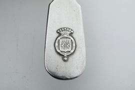 Sui manici applicato stemma entro riserva circolare sormontata da corona.
