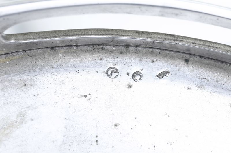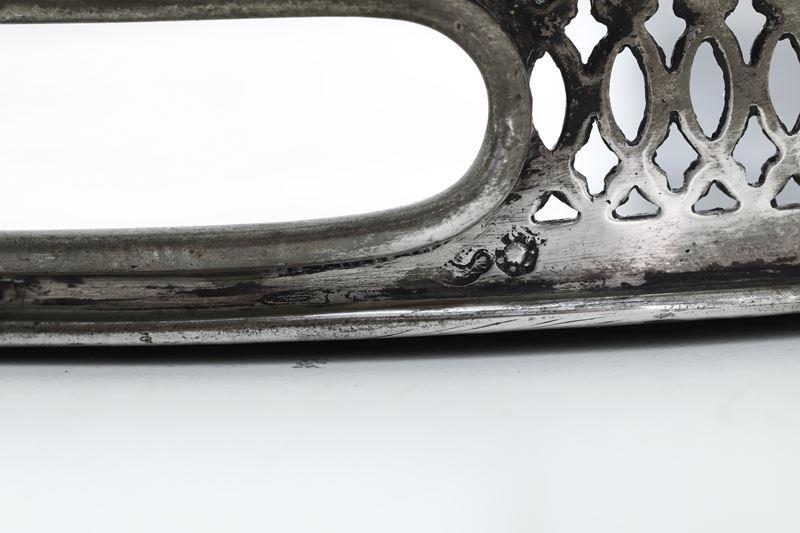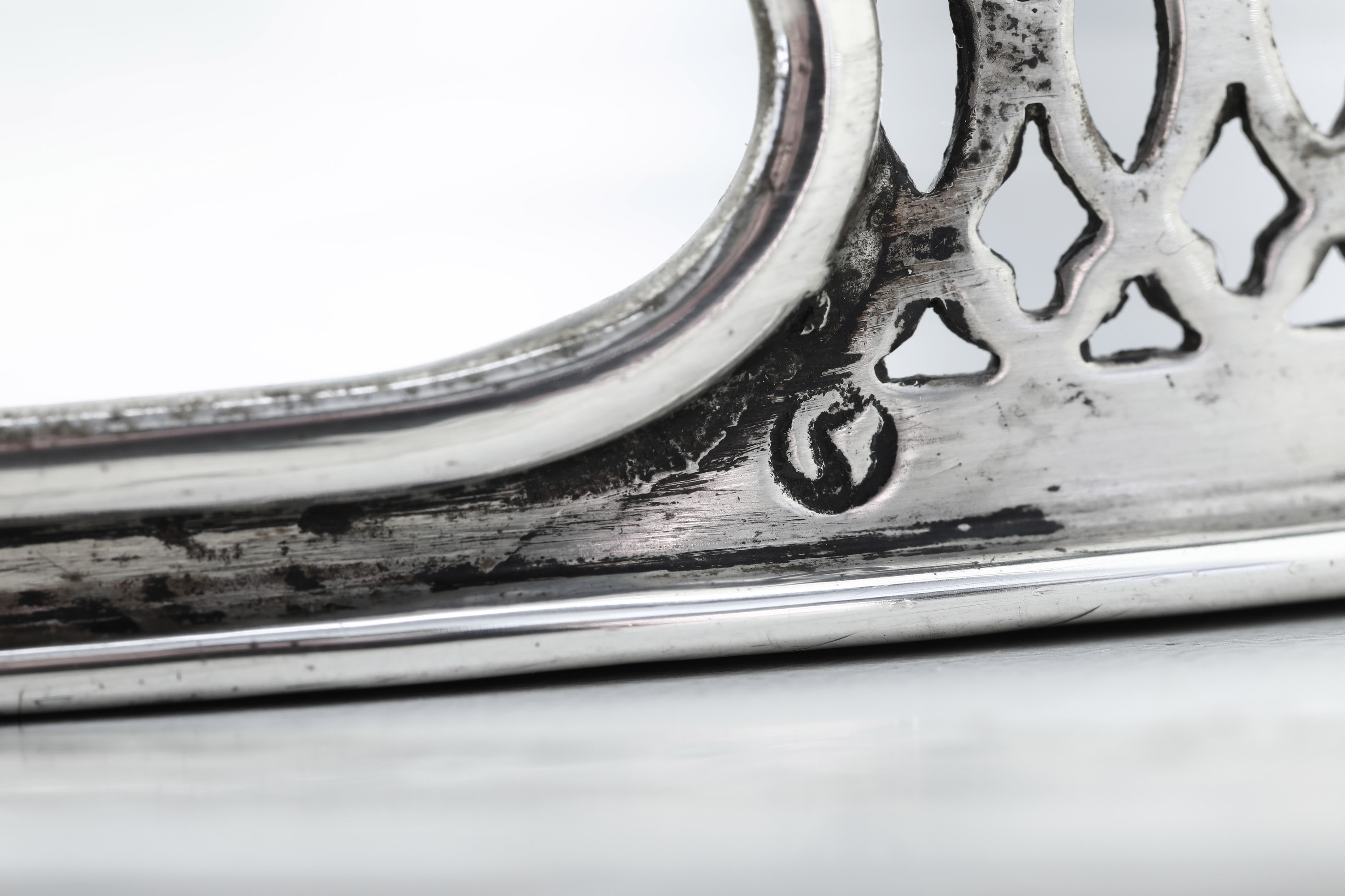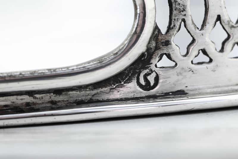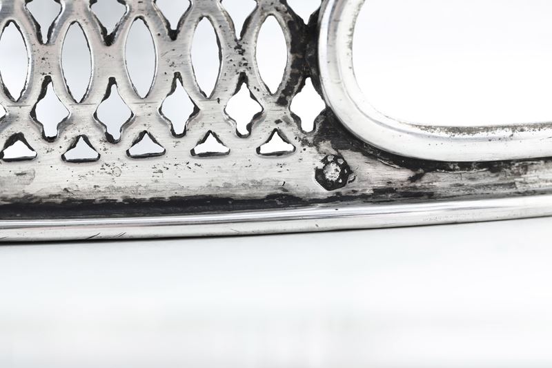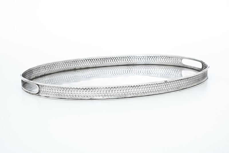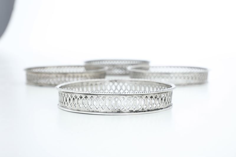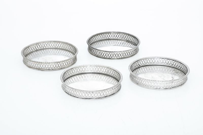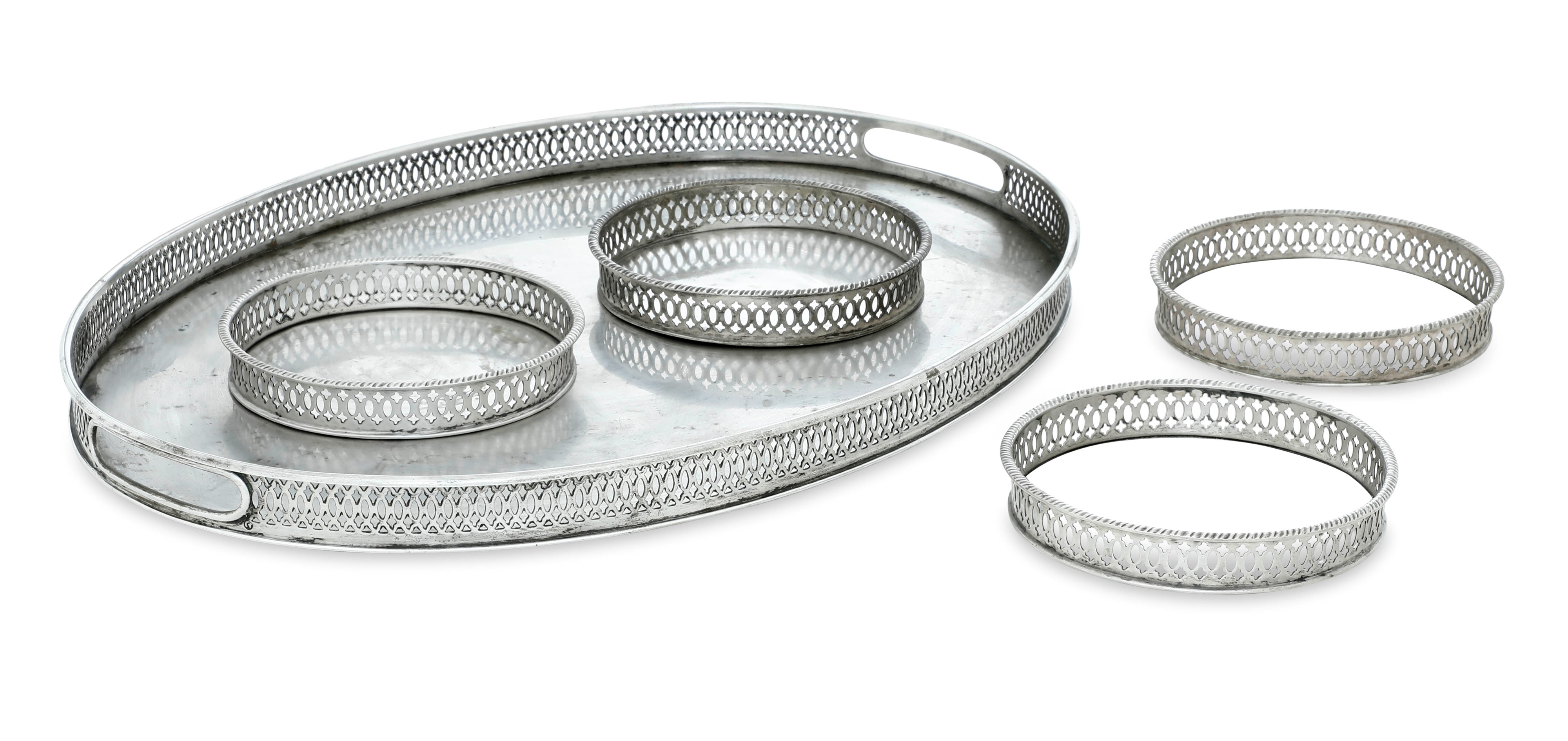 Vassoio ovale a ringhiera e quattro sottobottiglia. Argenteria veneziana del XIX secolo