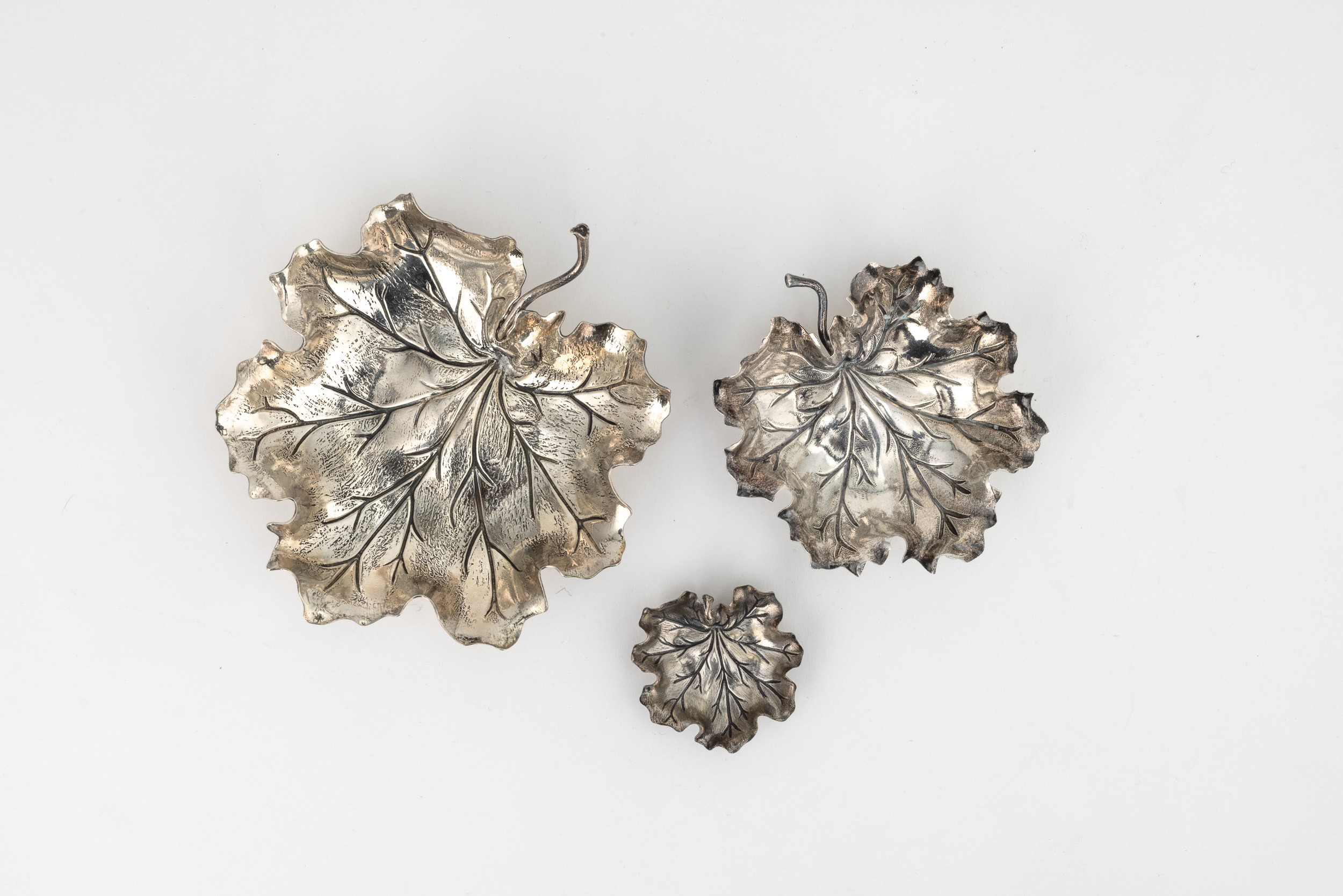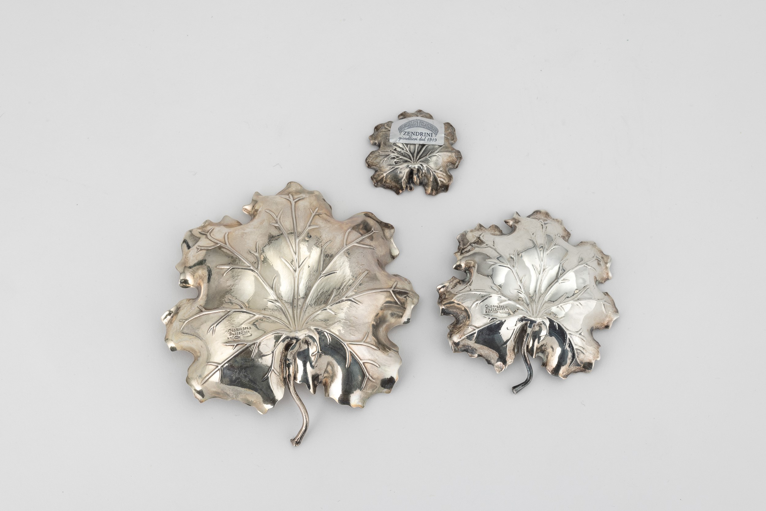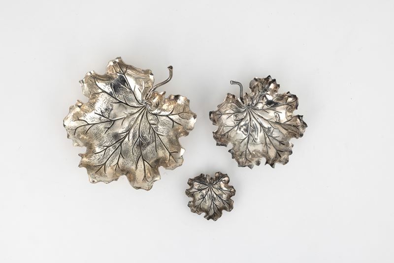 Gruppo di tre foglie. Maison Gianmaria Buccellati, argentiere Clementi Bologna, Italia XX-XXI secolo