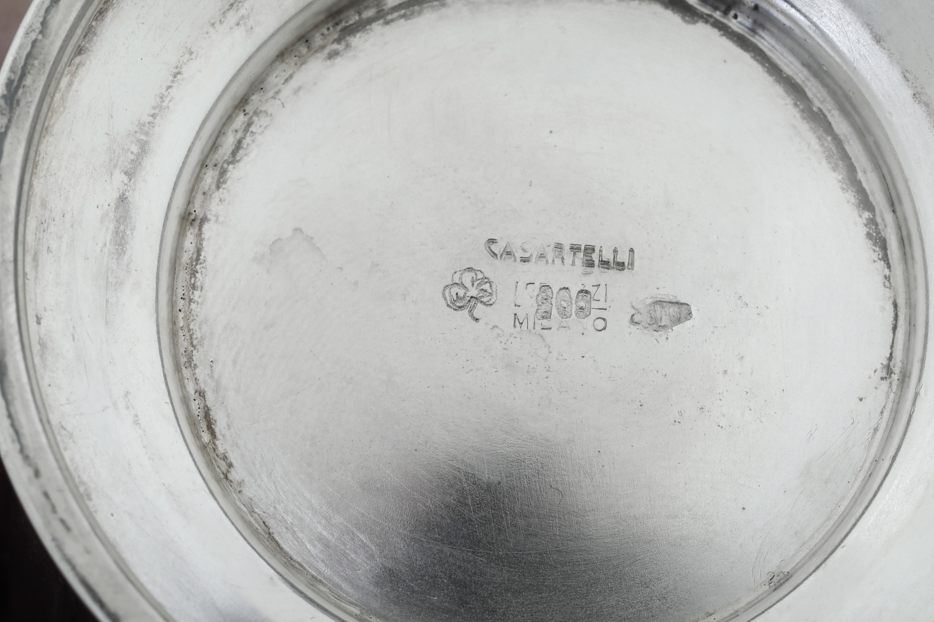 Servizio art decò. Argenteria artistica milanese del XX secolo, marchio con fascio littorio in uso dal 1935 al 1945. Argentiere [..]